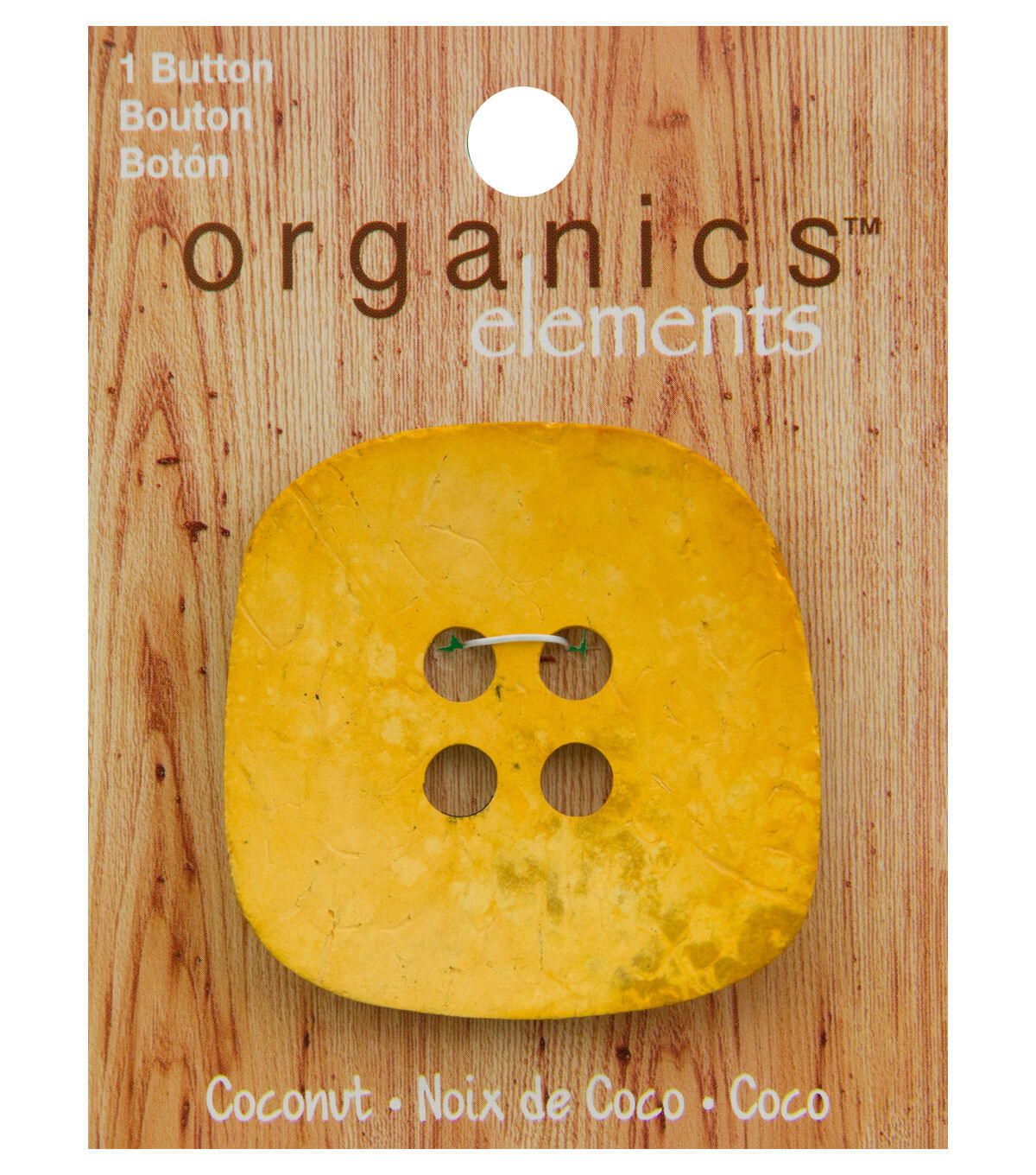 Brighten up your handmade creations with the Organics Elements Square Button Yellow. Made of coconut fiber, this button will add a rustic touch to your apparel project. It sports a vivid hue and is square. This sew-through button will make a great addition to sweaters, tote bags and more.