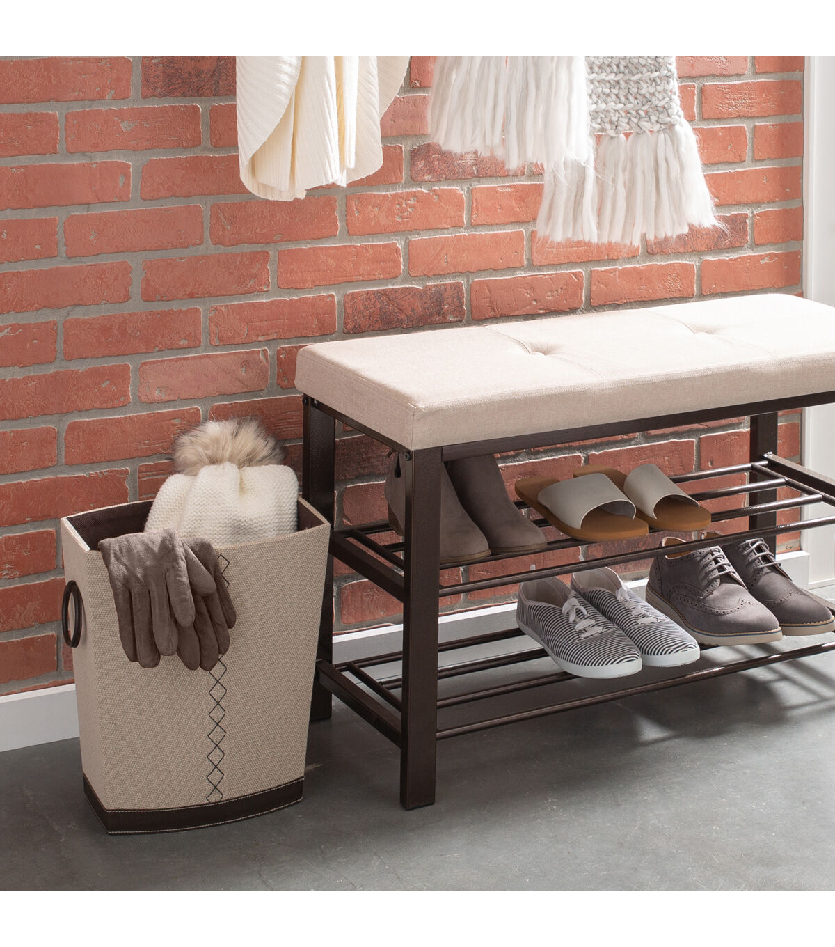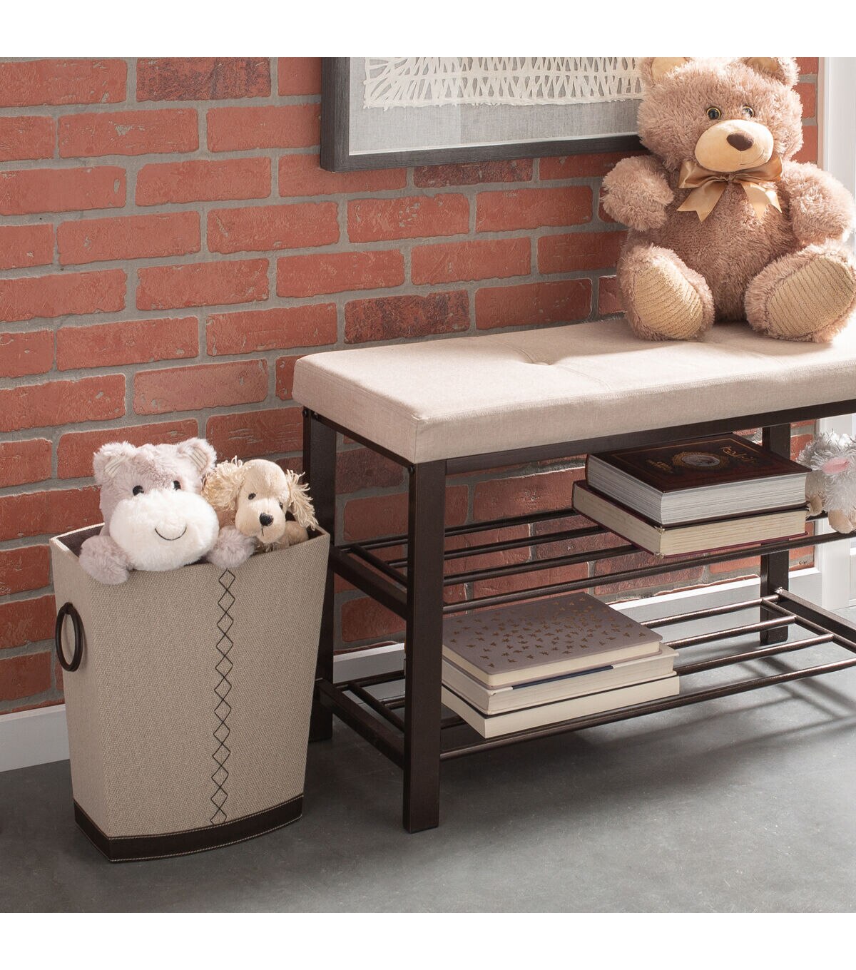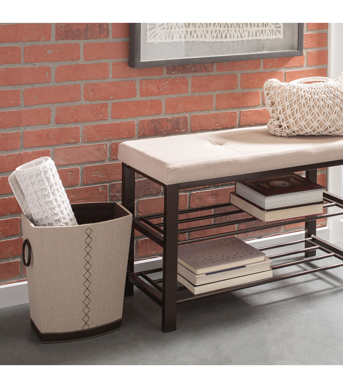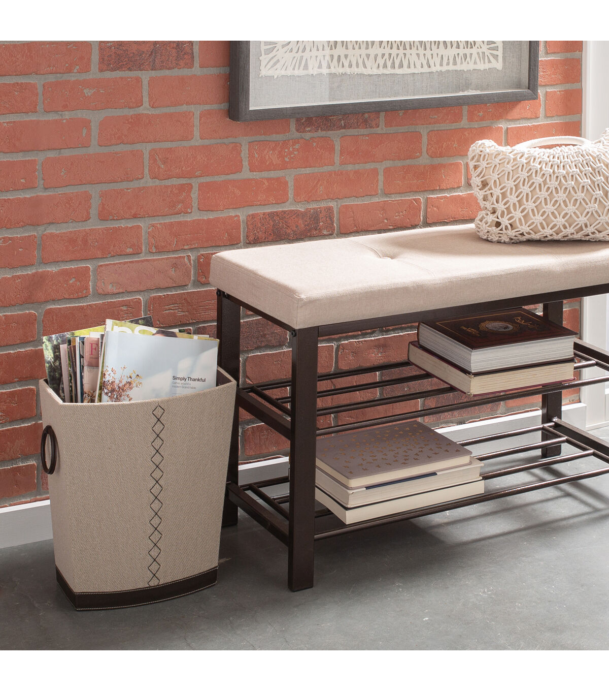 This Organize It All Multi-Purpose Basket is the perfect storage accessory for your home. It has a unique polyester design with faux leather accents that fits with your home decor. The basket has handles for easy movement. You can keep it in your living room to hold blankets and magazines. Or keep it in the kids room to hold toys. Keep your home clean and organized with this basket.