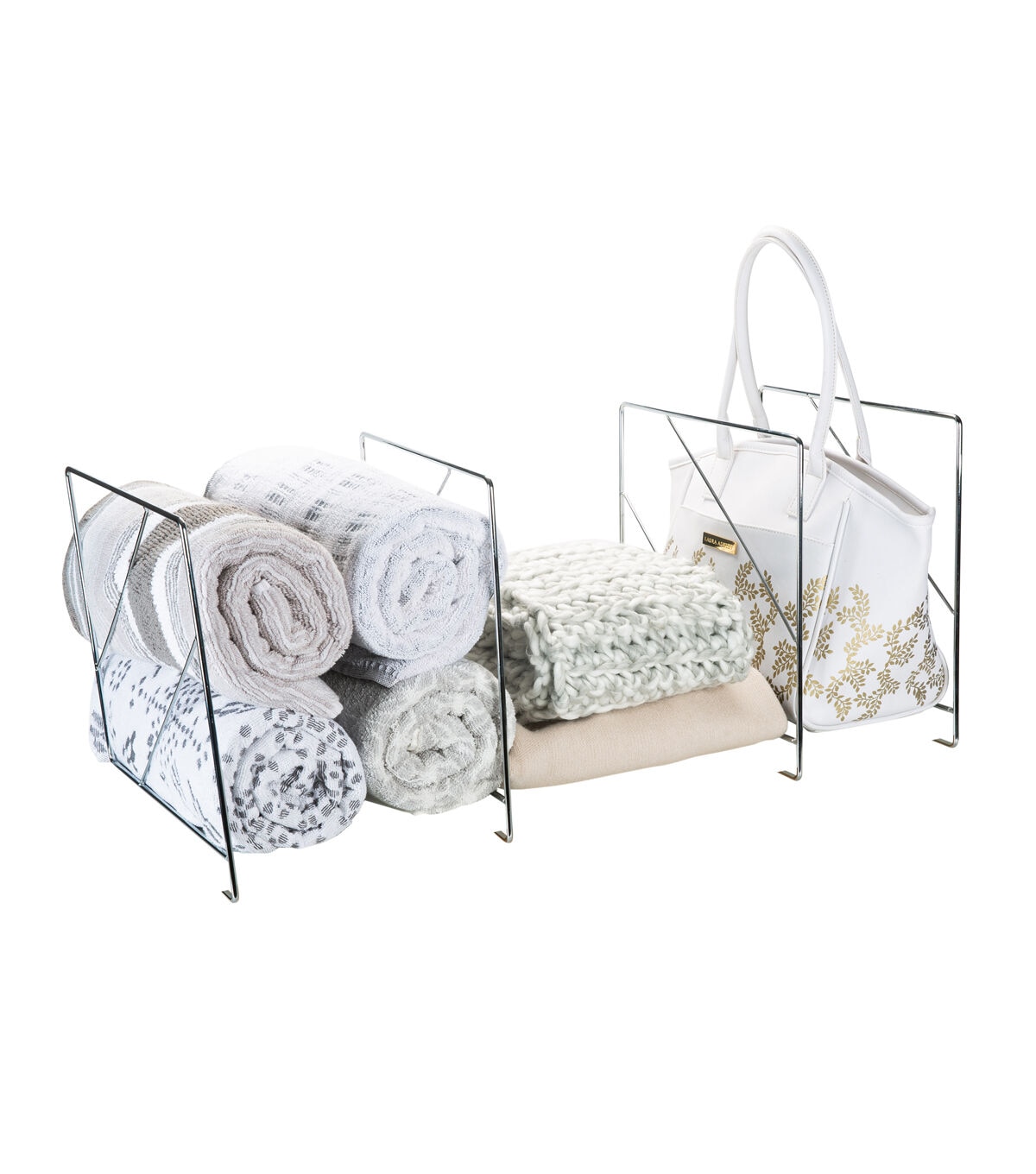 The Organize It All Shelf Dividers are perfect for organizing any shelf closet space. Just slide onto the shelf and they create a perfect division that prevents clothes from falling over and creating a mess of the space. The design is slim so it does not take up any additional space on the shelf. Make your closet clean and organized so it is easier for you to find what you are looking for.