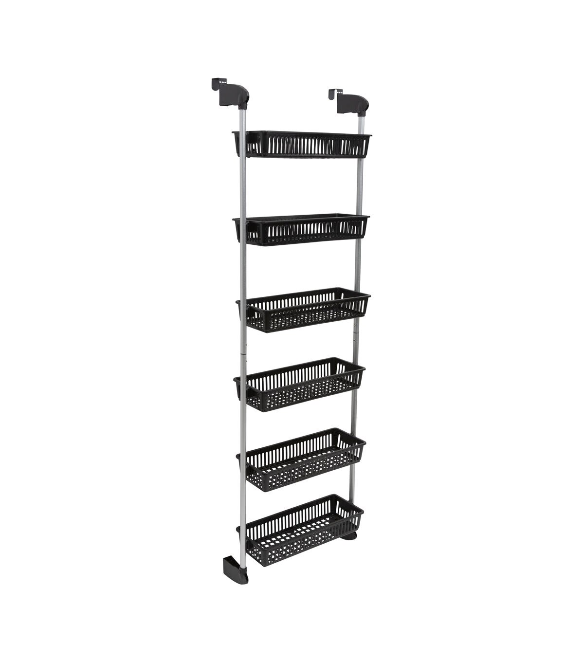 Maximize your storage space with the Organize It All Over the Door Basket Organizer. This storage unit is designed to hook on the back of most standard doors, creating 6 tiers worth of storage space. Each tier is a sturdy basket made to store or display items. Great for storing accessories, toiletries, bath items. Perfect use for a bathroom, pantry, dorm, office or closet. Make the most of your space and easily hang this on the back of your door to store!