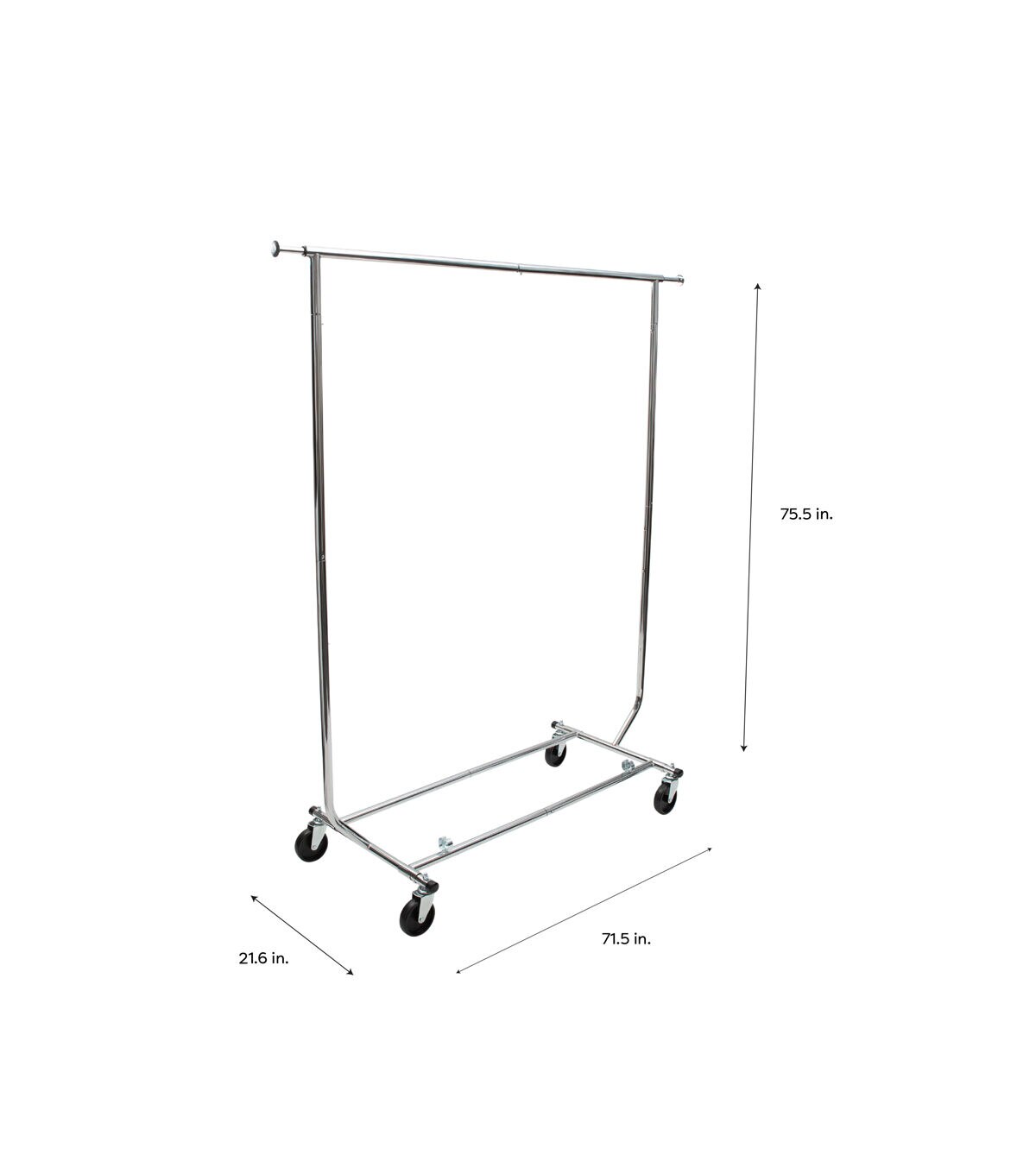 Organize your garments with the Organize It All Ultra Adjustable Garment Rack. Offers you additional closet space when needed. This rack is expandable for adding additional clothes. Heavy duty and durable to hold coats, suits, dresses and more. It is designed with 4 wheels to make mobility of the rack easy. Put in your bedroom, closet, or office for additional clothing storage space.
