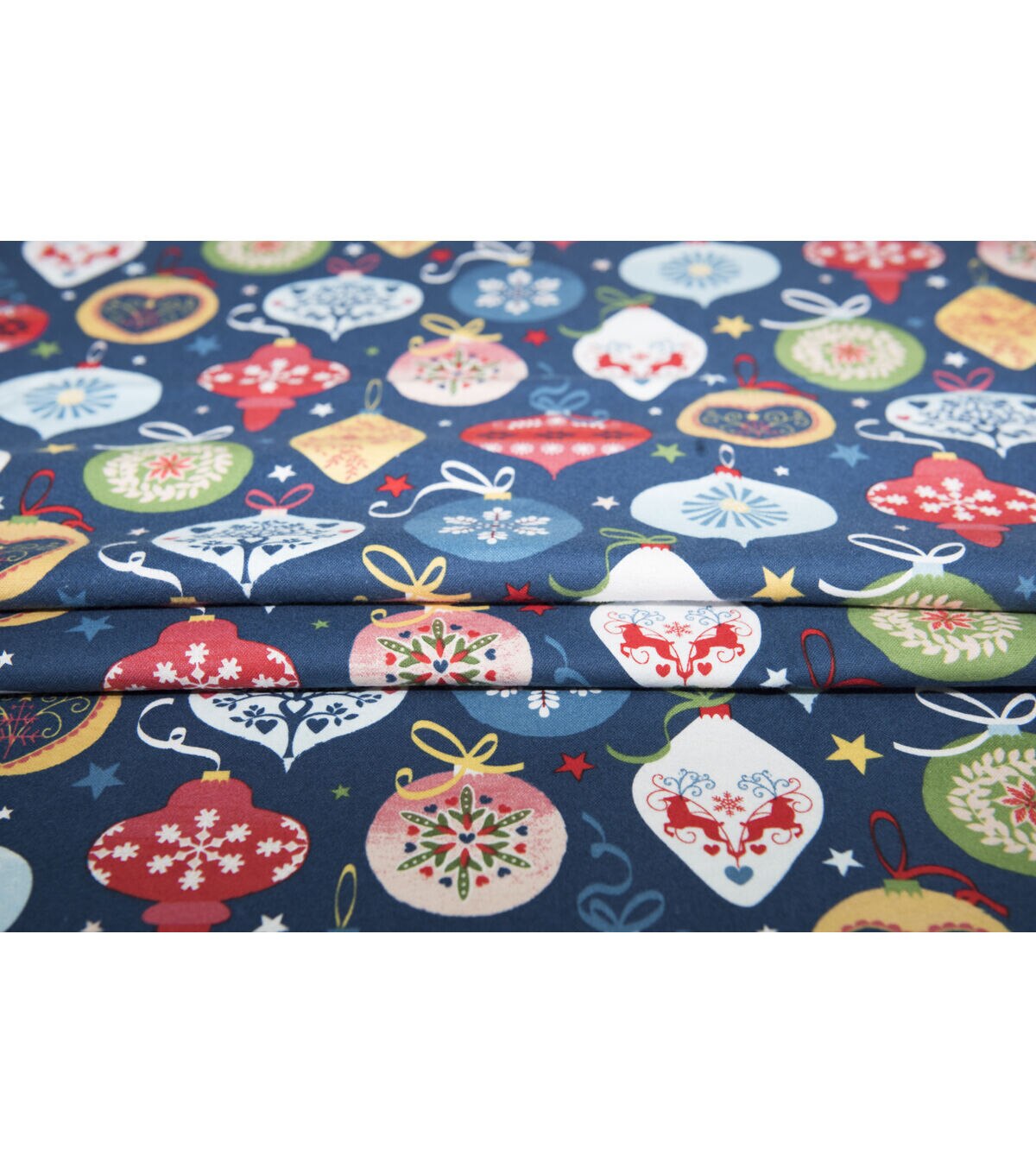 Ornaments & Stars on Blue Super Snuggle Christmas Flannel Fabric