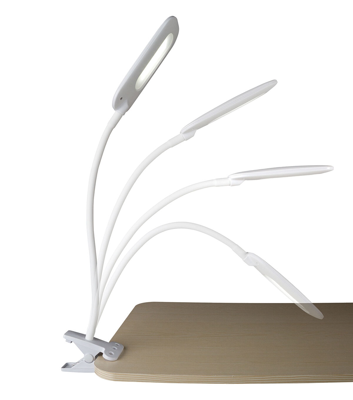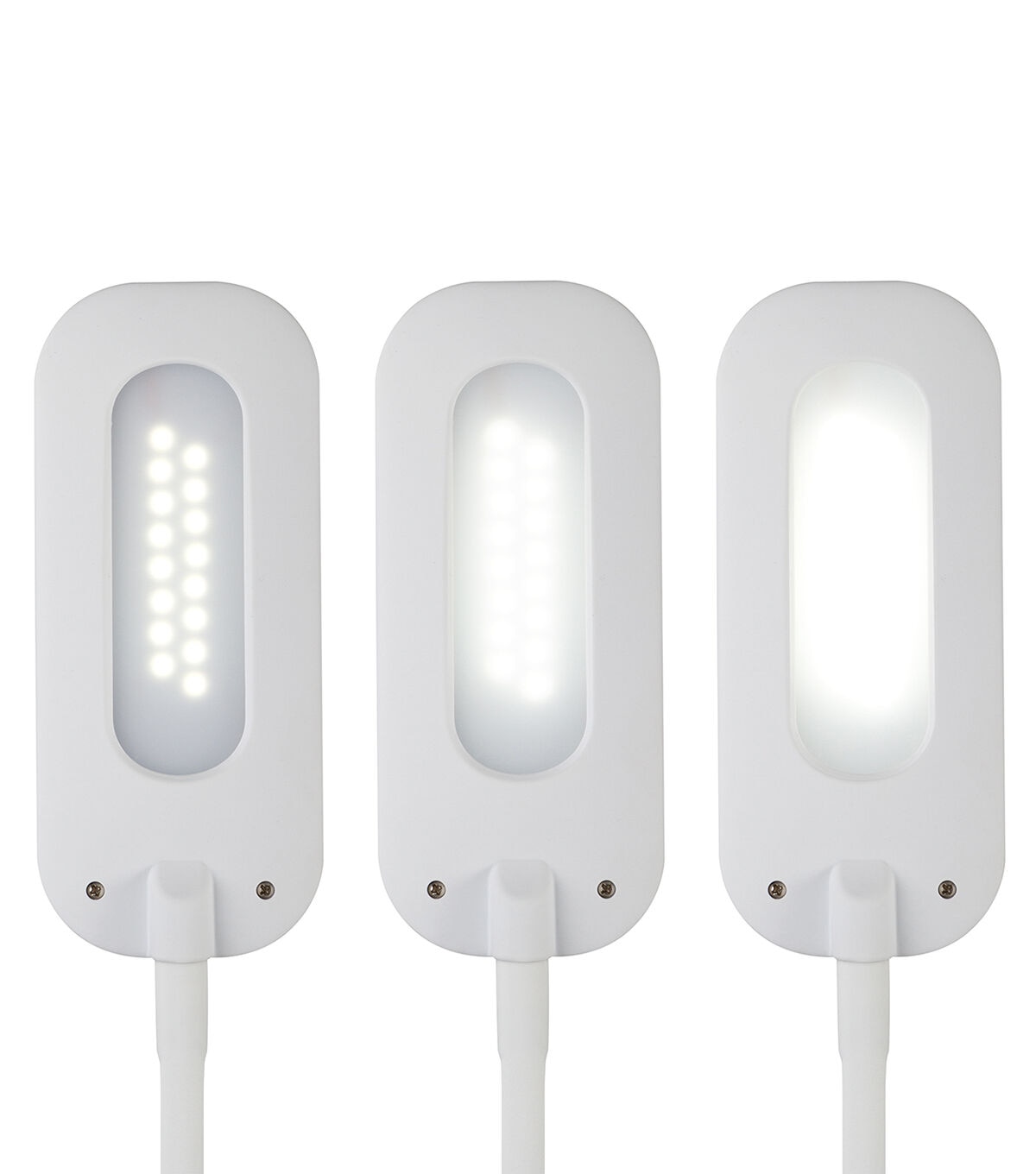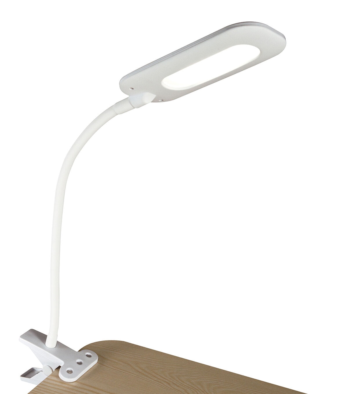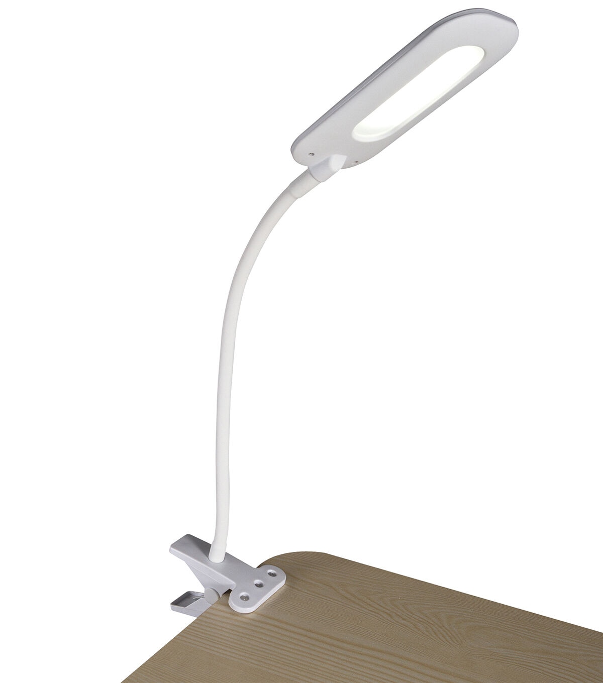 Bring great lighting into small spaces with the OttLite Flexible Soft Touch LED Clip Lamp. with the spring-loaded clip, attach securely to tables, bookshelves, and more. The super flexible neck adjusts the height from 4 to 18.5 inches to direct the clear, crisp natural daylight ClearSun LED illumination right where you need it. Proprietary ClearSun LEDs reduce glare and eyestrain for hours of focused, productive time. This OttLite lamp features a soft-touch texture on rubberized neck and shade. Easily adjust the three brightness settings with touch activated controls.