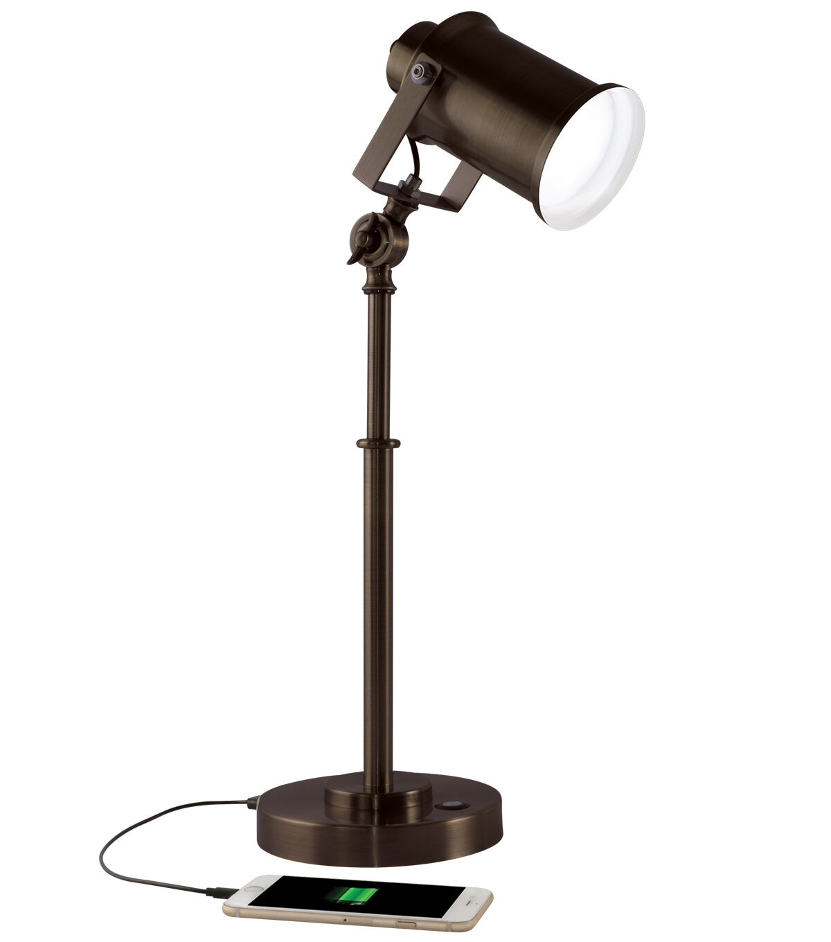 Industrial-era design meets next generation ClearSun LED technology with the Restore LED Desk Lamp. As close to balanced natural daylight as you can get, OttLite’s exclusive ClearSun LED Technology reduces eyestrain by up to 51% for hours of visual comfort. Adjustable vintage spotlight lets you direct the low heat, low glare illumination right where you need it. And with the touch change the color temperature (ClearSun natural daylight, bright white and warm white), and select from three brightness levels. Plus, the 5V, 2.1A USB port lets you fully and quickly charge your devices.