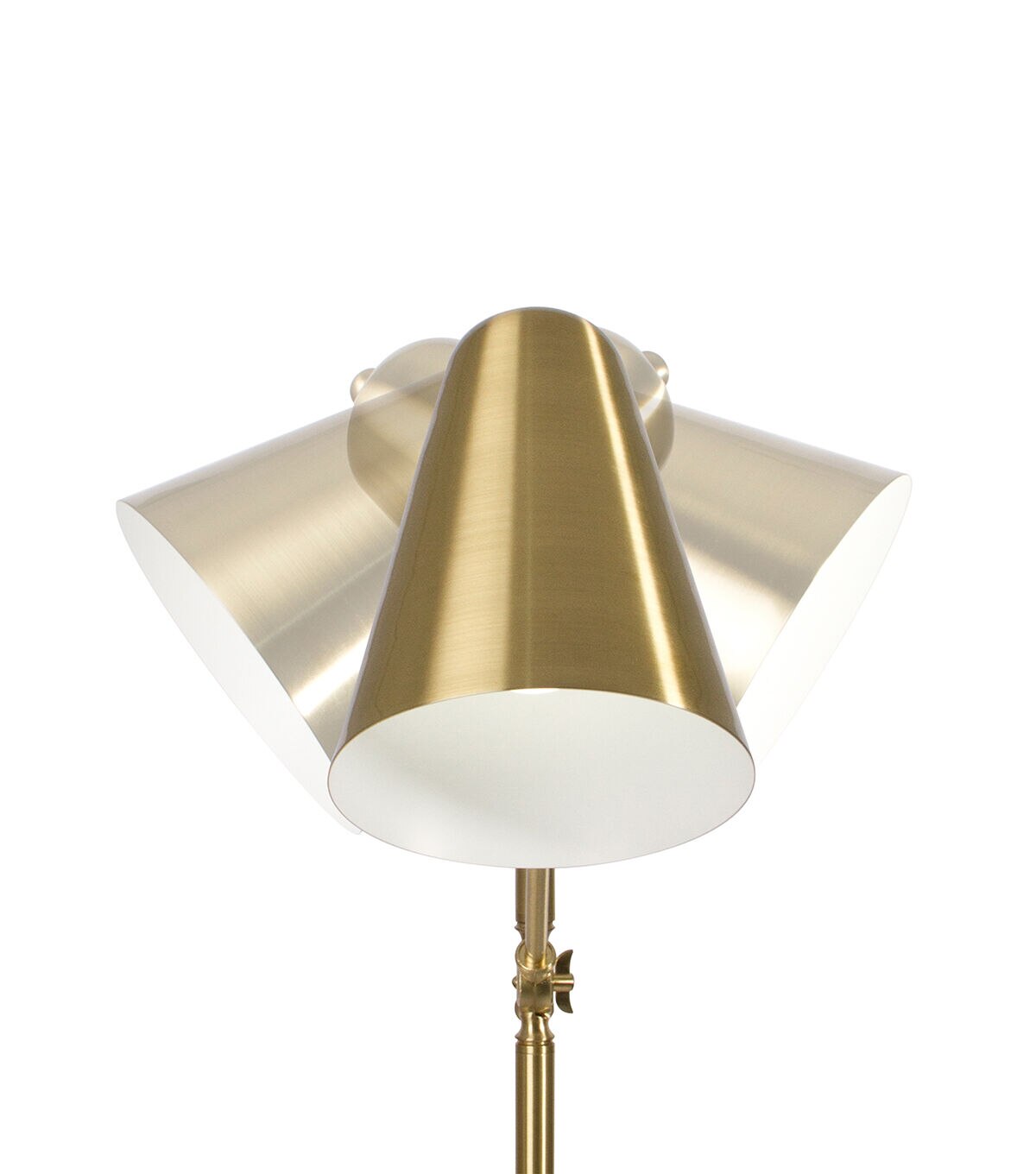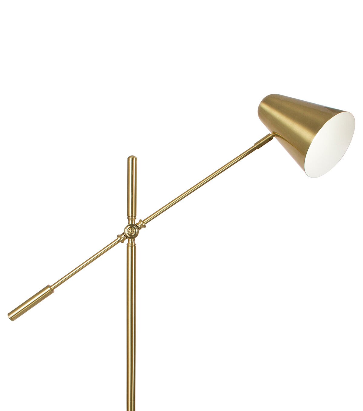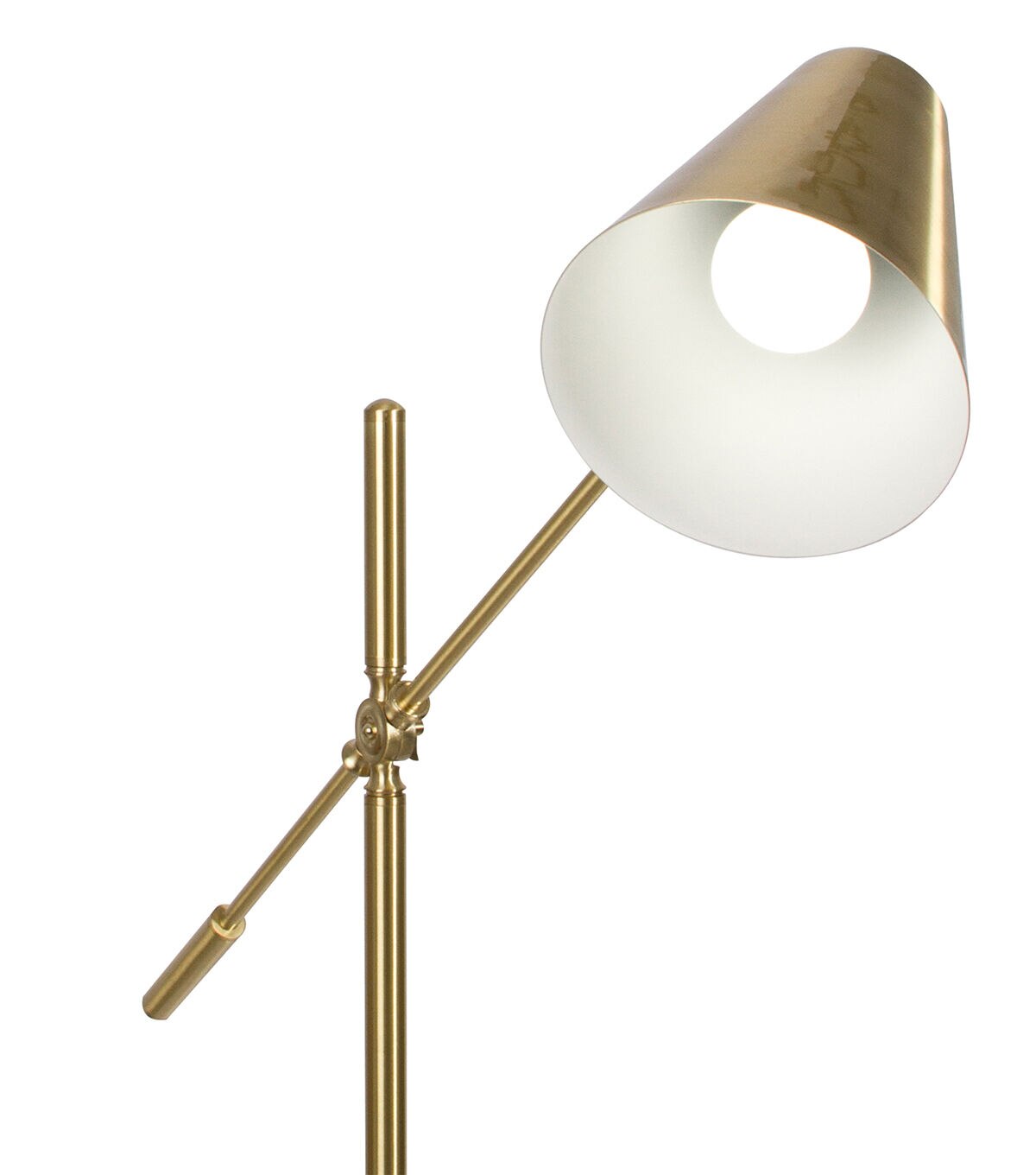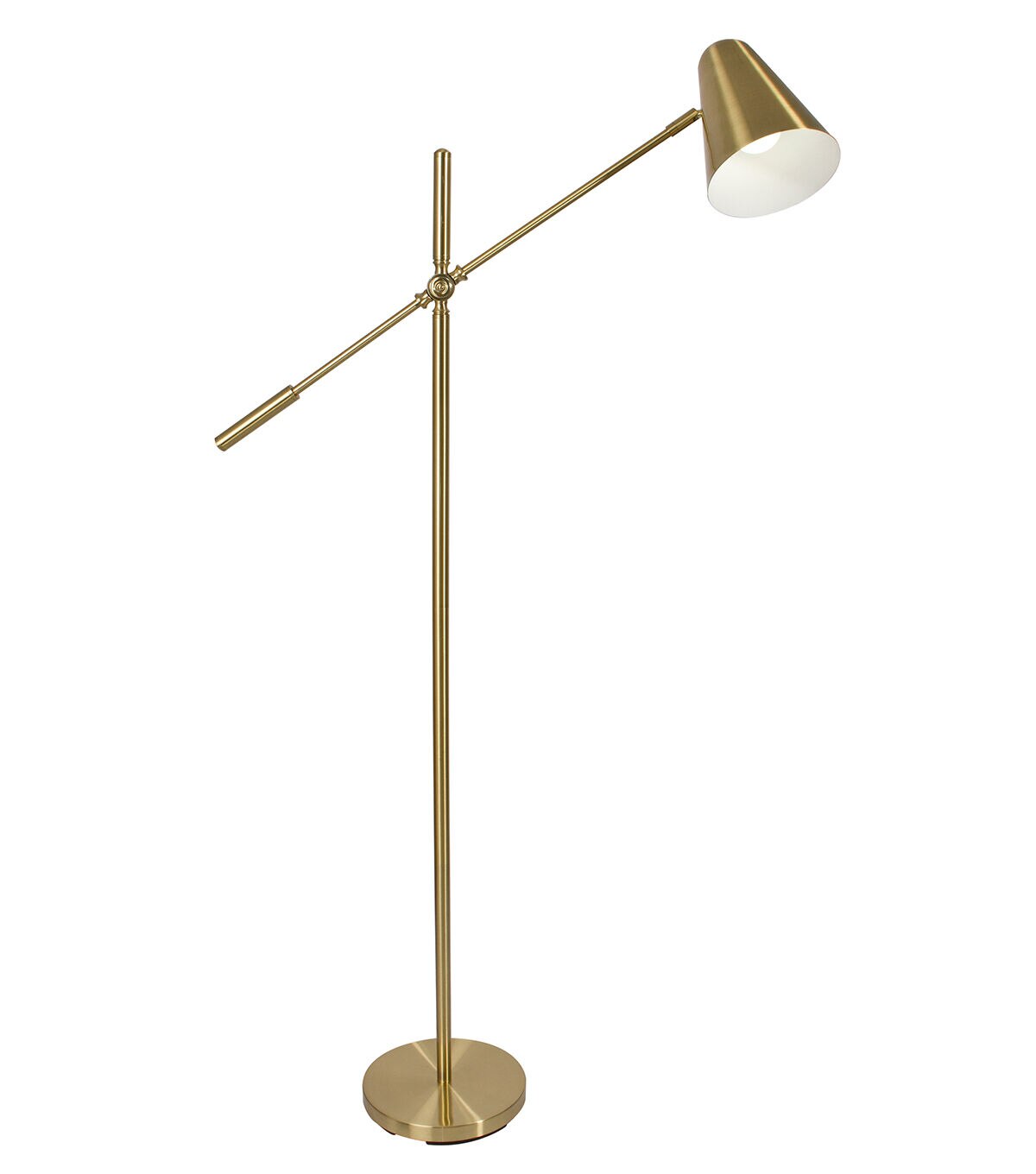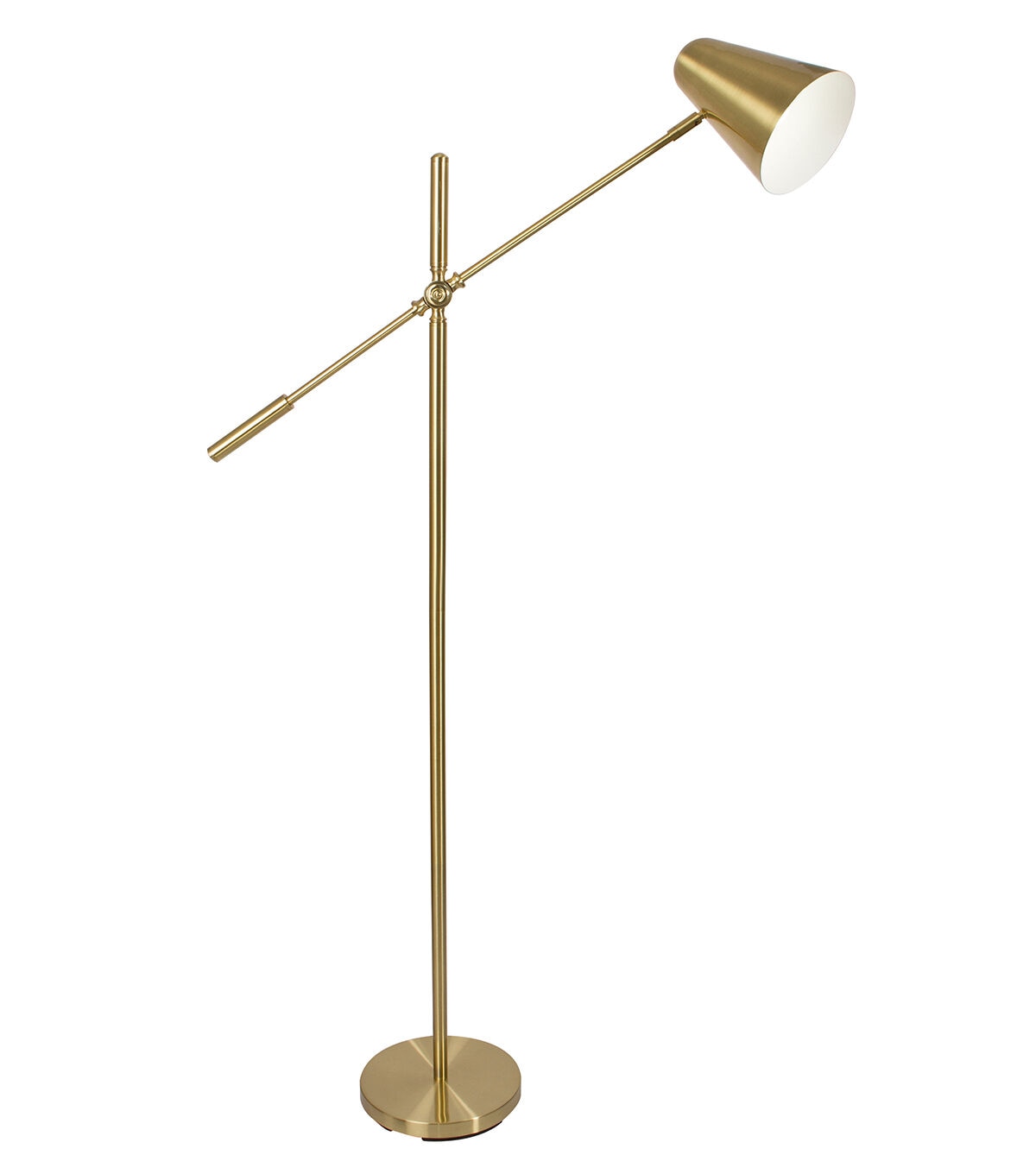 With bold, mid-century modern design, the OttLite Archer LED Floor Lamp has an adjustable shade making it a perfect crafting lamp or reading lamp. With a maximum height of 55.5 inches, the lamp features a satin brass finish and detailed touches throughout. The streamlined shade directs light exactly where it's needed over your projects. Perfect for your craft room, sewing studio or living room. Included is an 8.5W (60W equivalent) OttLite Energy Star rated LED bulb.This lamp also features a convenient step-on power switch on the cord, making it easy to turn on/off. See every color accurately and detail clearly with reduced glare and eyestrain so you can do more of what you love, longer.