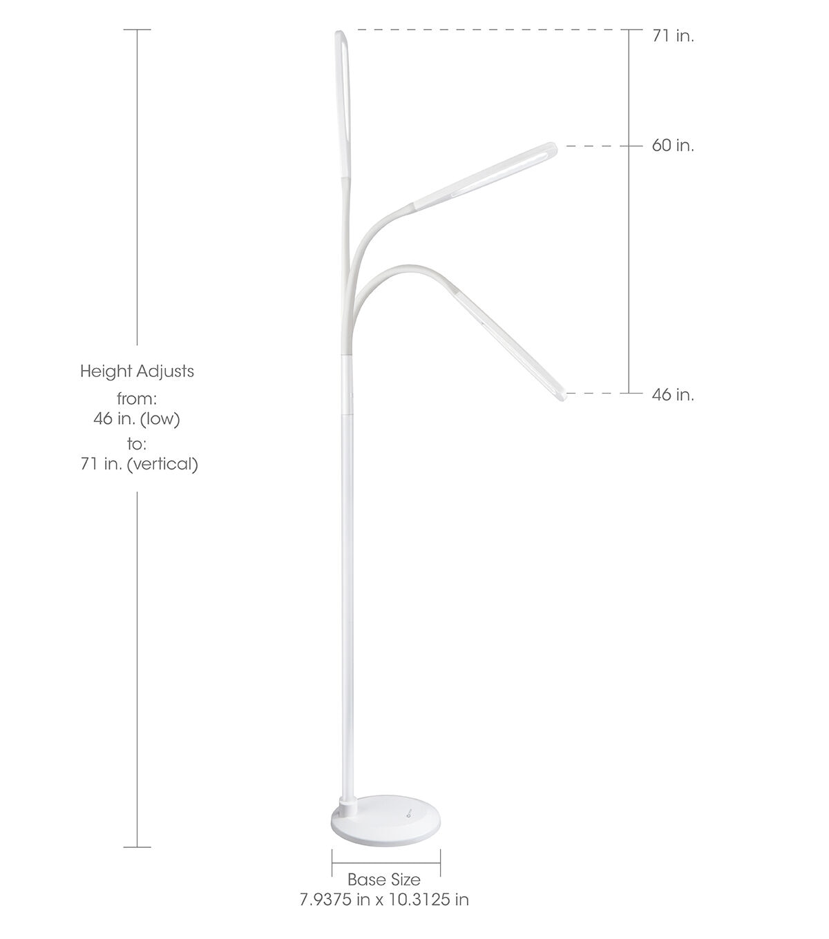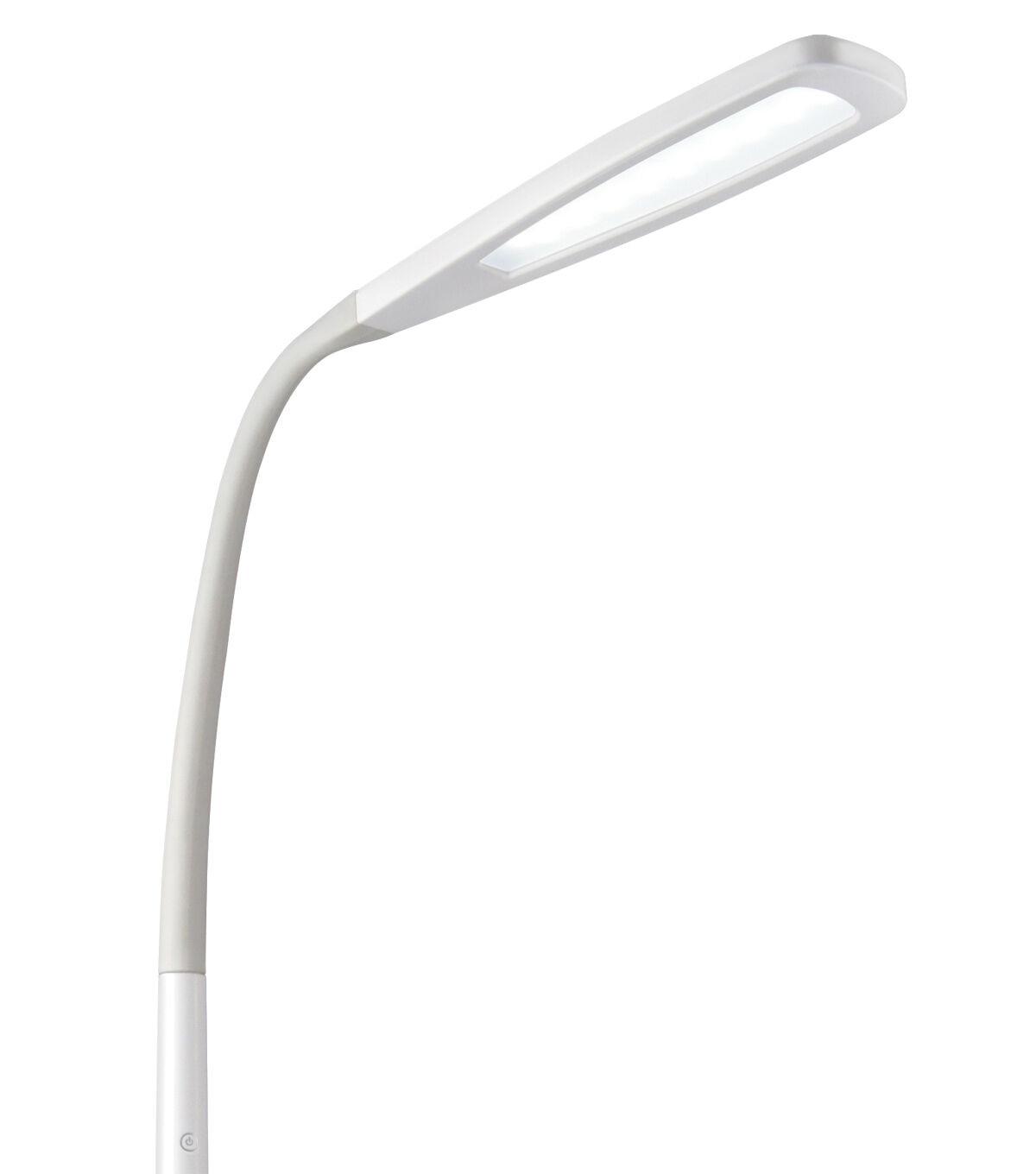 The OttLite Natural Daylight LED Flex Floor Lamp-White helps you see details clearly and colors accurately, whether reading in your favorite chair or sewing in your sewing room. An expansive 12.5-inch shade and rubberized flexible neck allows you to direct the powerful OttLite Natural Daylight LED Illumination right where you need it. Touch-activated controls adjust the brightness levels and the smart memory feature remembers your last brightness setting. With this OttLite lamp you can see details clearly and reduce glare and eyestrain so you can do what you love, longer.