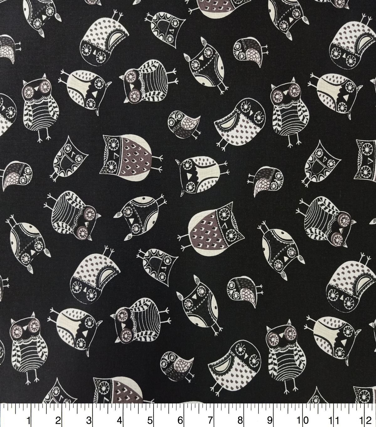 Owls on Black Quilt Cotton Fabric by Quilter's Showcase
