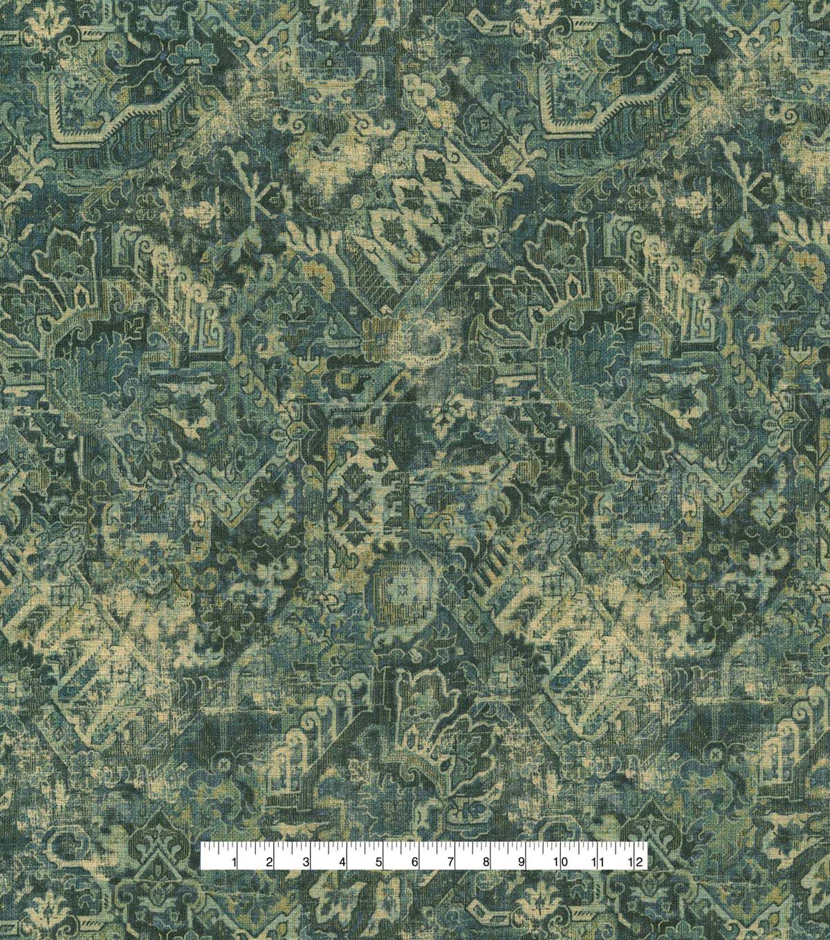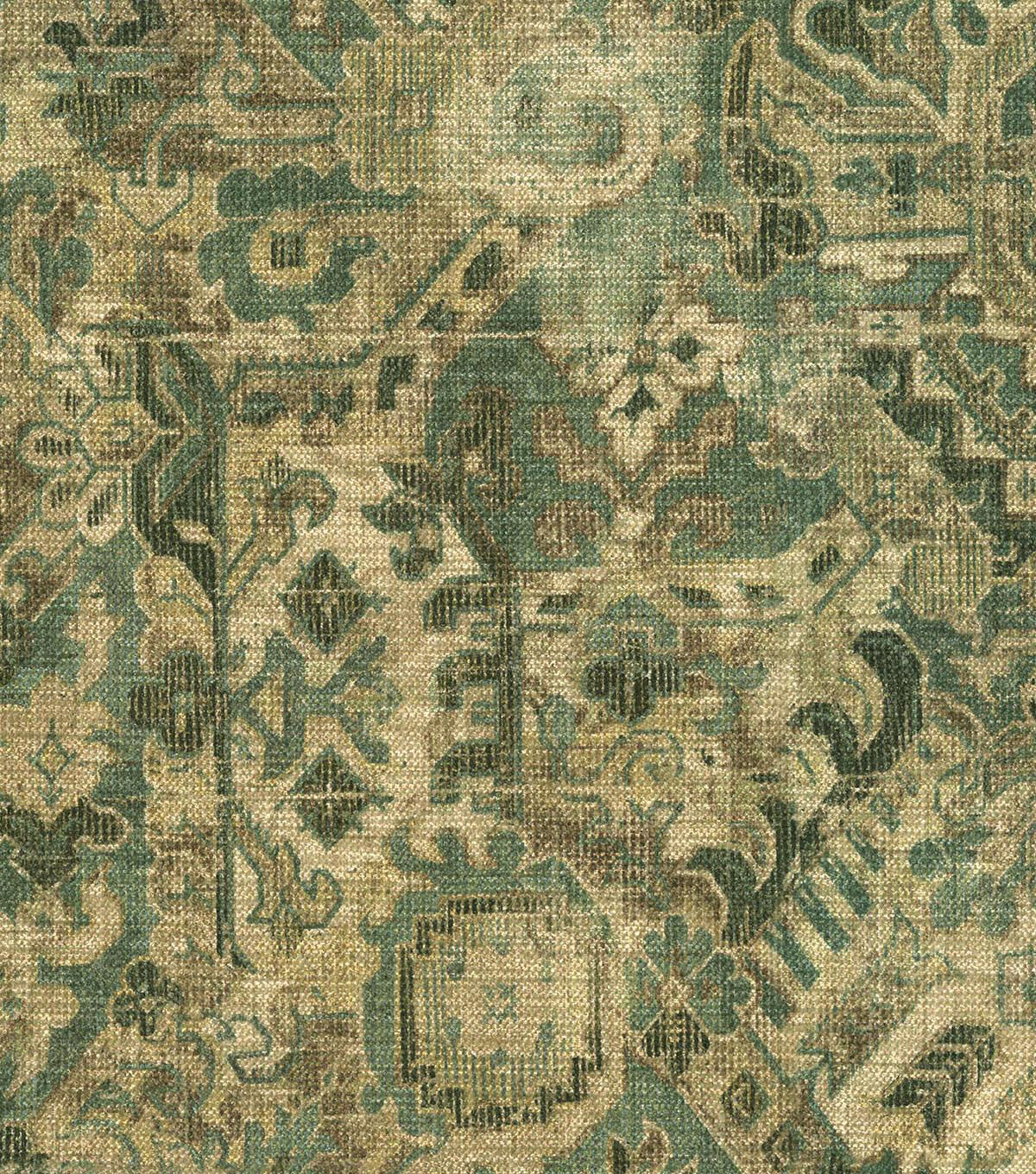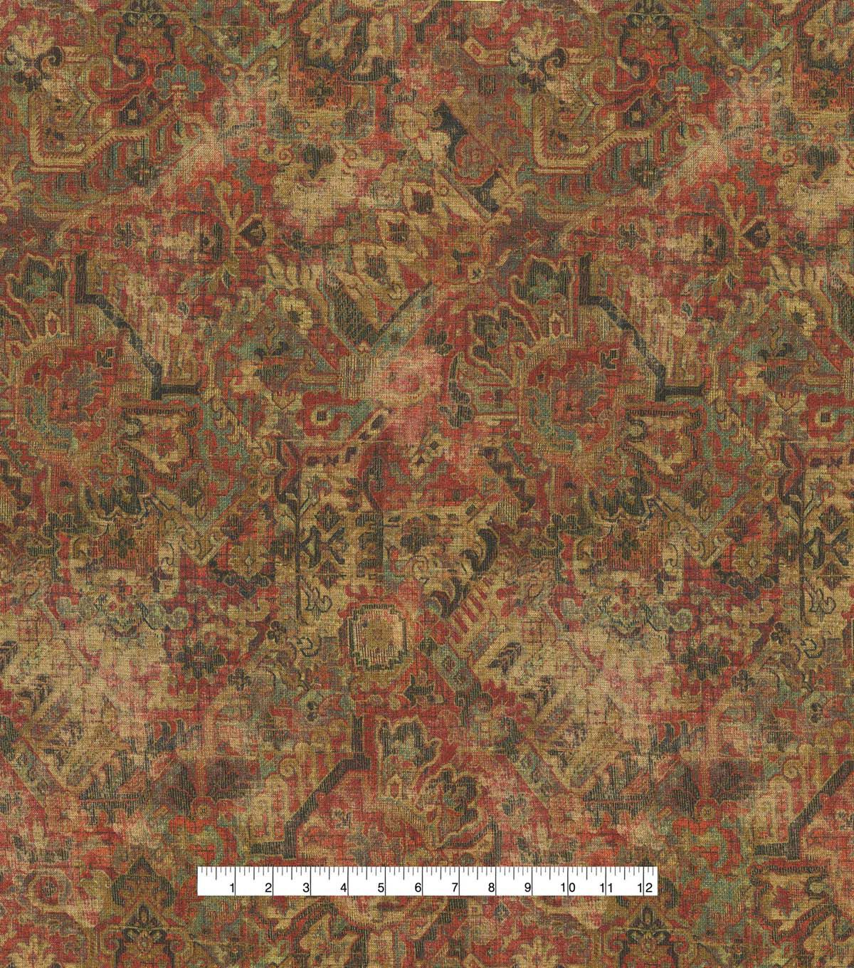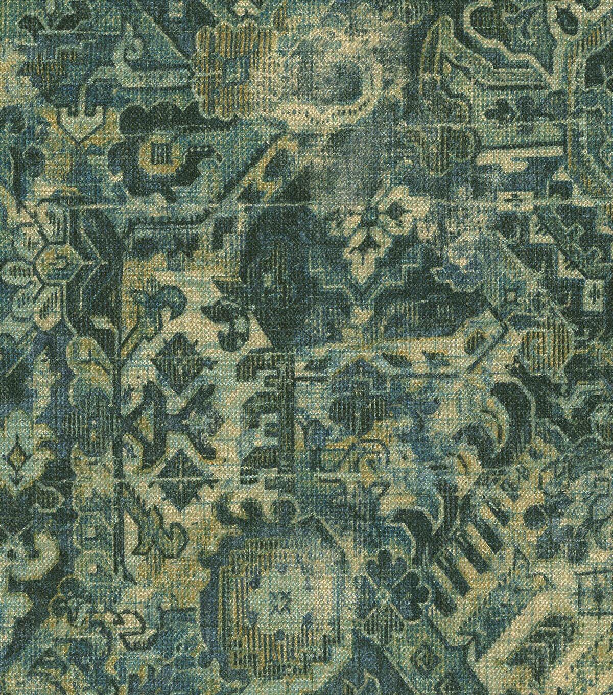 P/K Lifestyles Cunbrae is a qunitessential vintage carpet printed on chenille ground of 79% polyester, 30% cotton. Cumbrae gas a velvety, rich hand that complements its ornate and distressed contents.