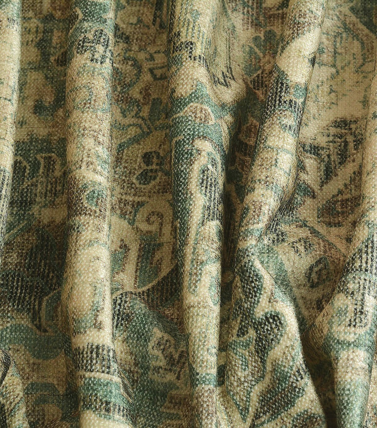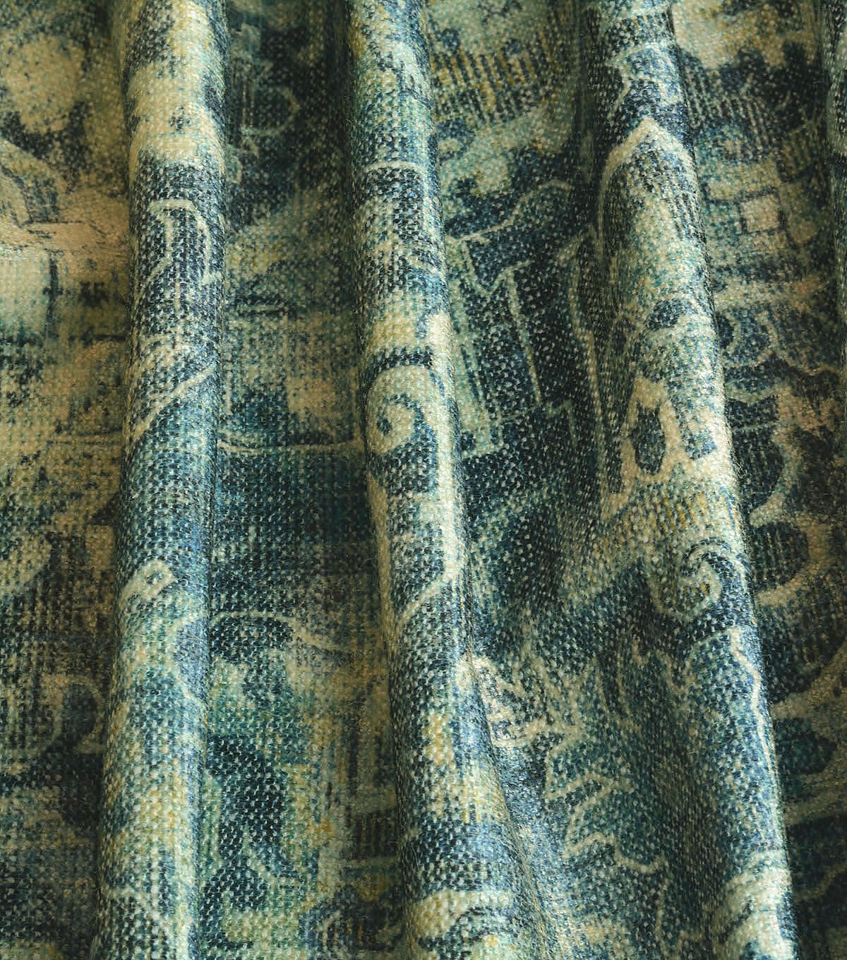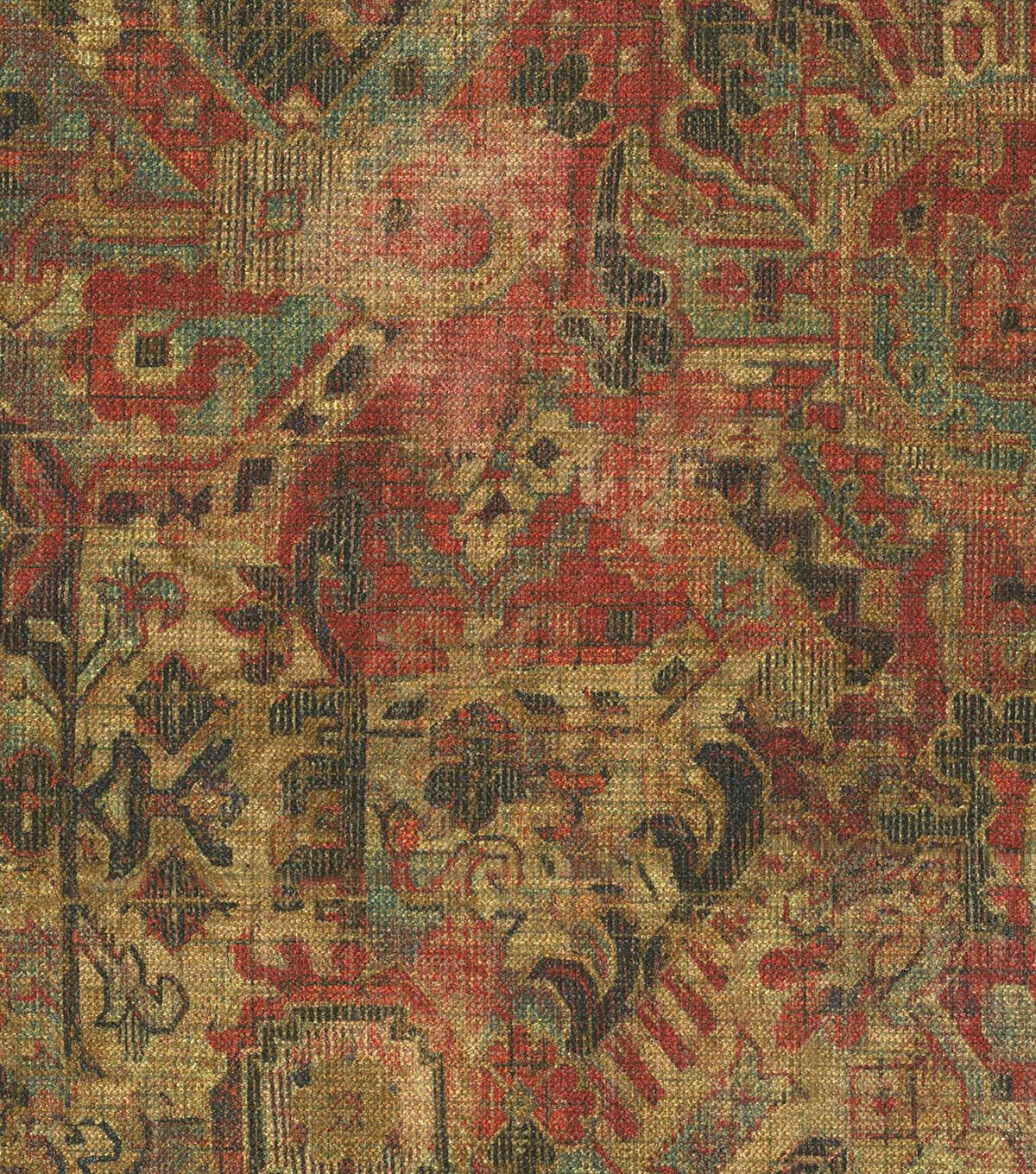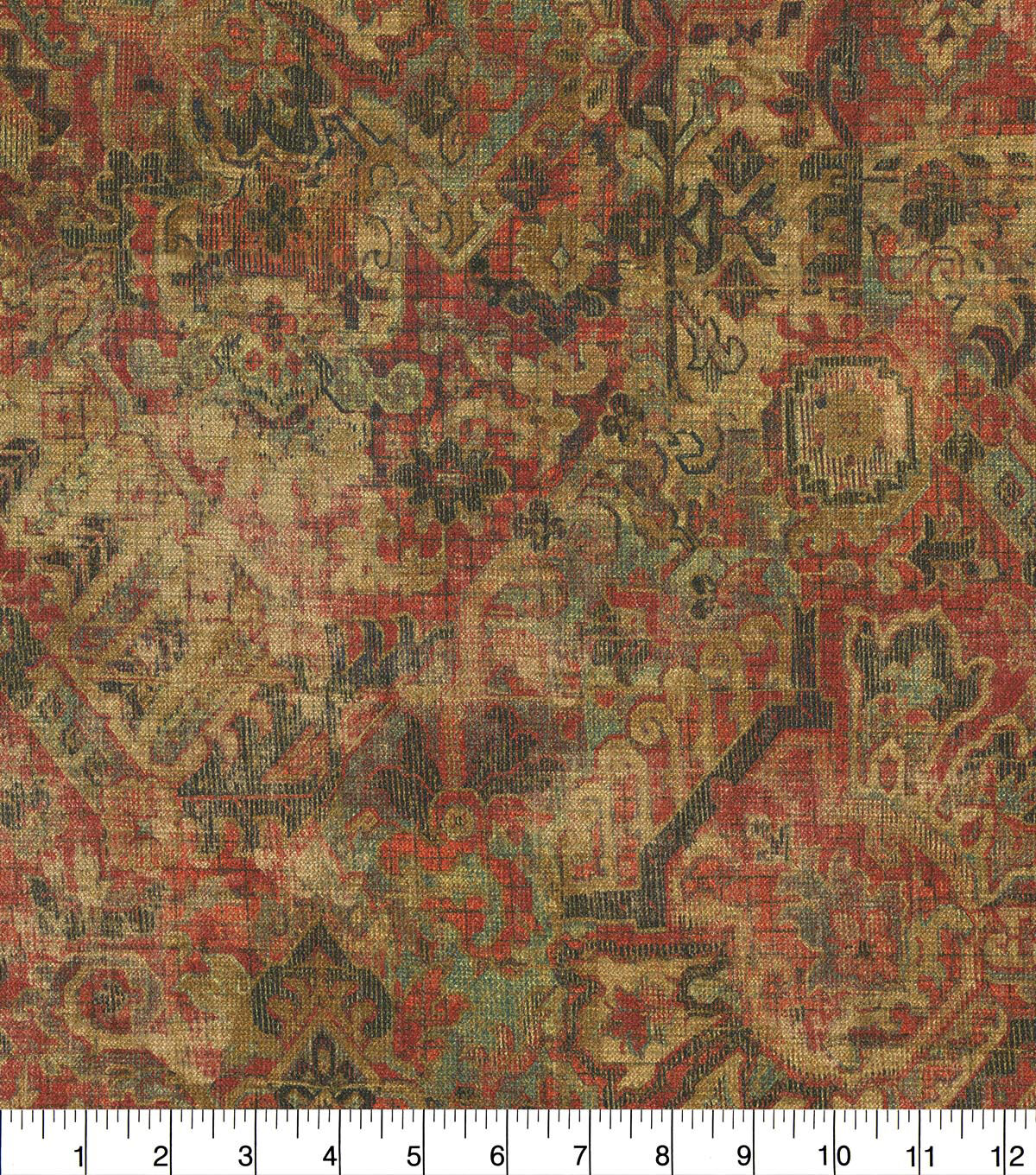 P/K Lifestyles Cunbrae is a qunitessential vintage carpet printed on chenille ground of 79% polyester, 30% cotton. Cumbrae gas a velvety, rich hand that complements its ornate and distressed contents.