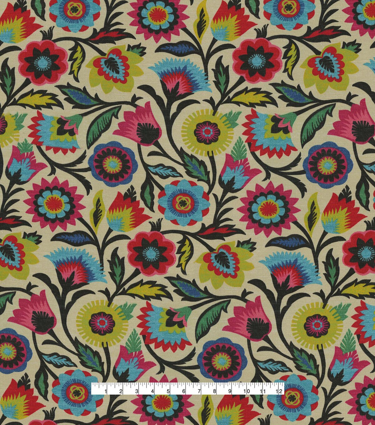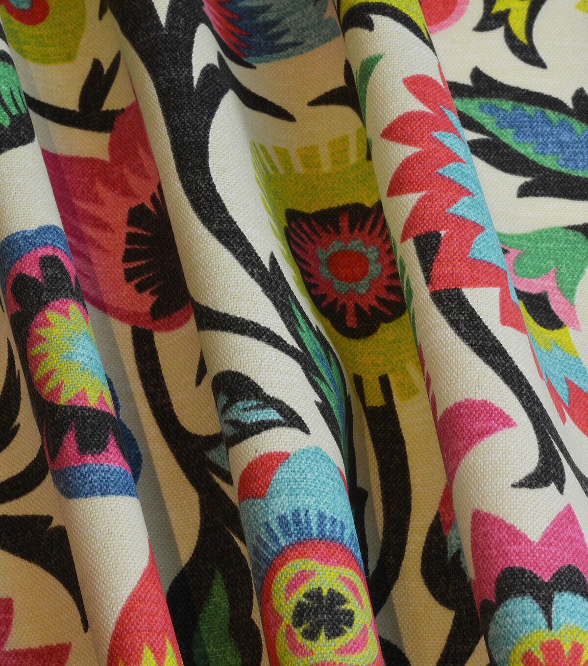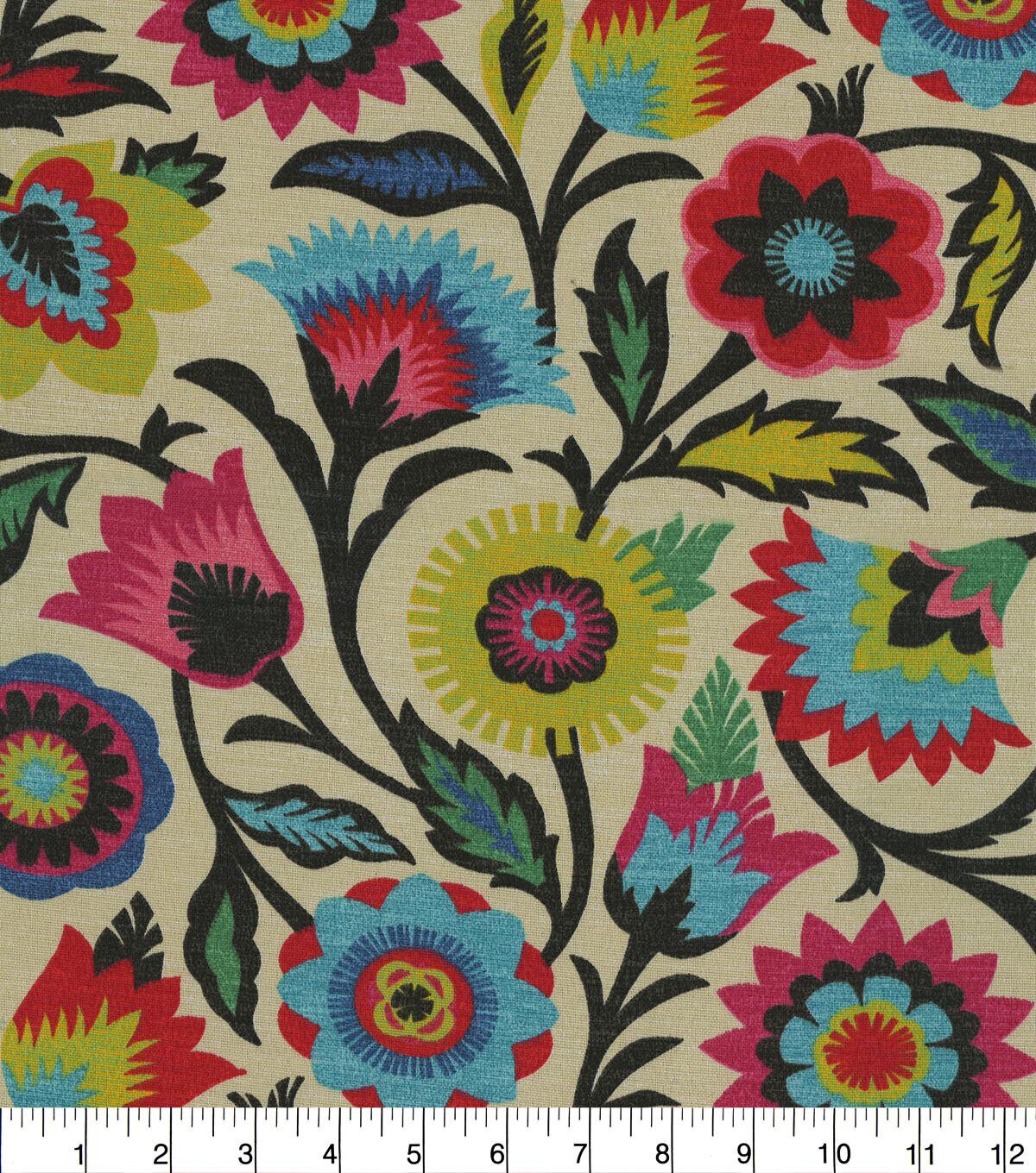 P/K Lifestyles Outdoor Fiesta Floral is reminiscent of hand-crafting Otomi embroidery. Fiesta Floral brings the vivid and abstract shapes of Mexican textiles to the home. This festive floral can be used for upholstery, drapery, toss pillow, seat cushions, tablecloths and more.