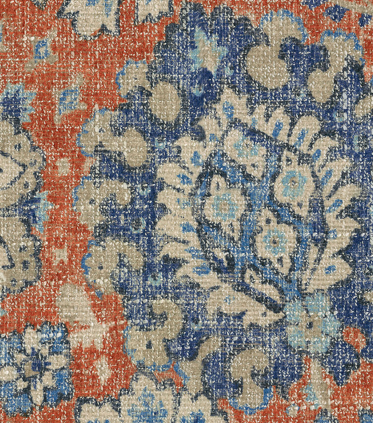 Influnced by a vintage carpet with a Eastern flari, Heriz Medallions is an abstract carplet-like botanical.