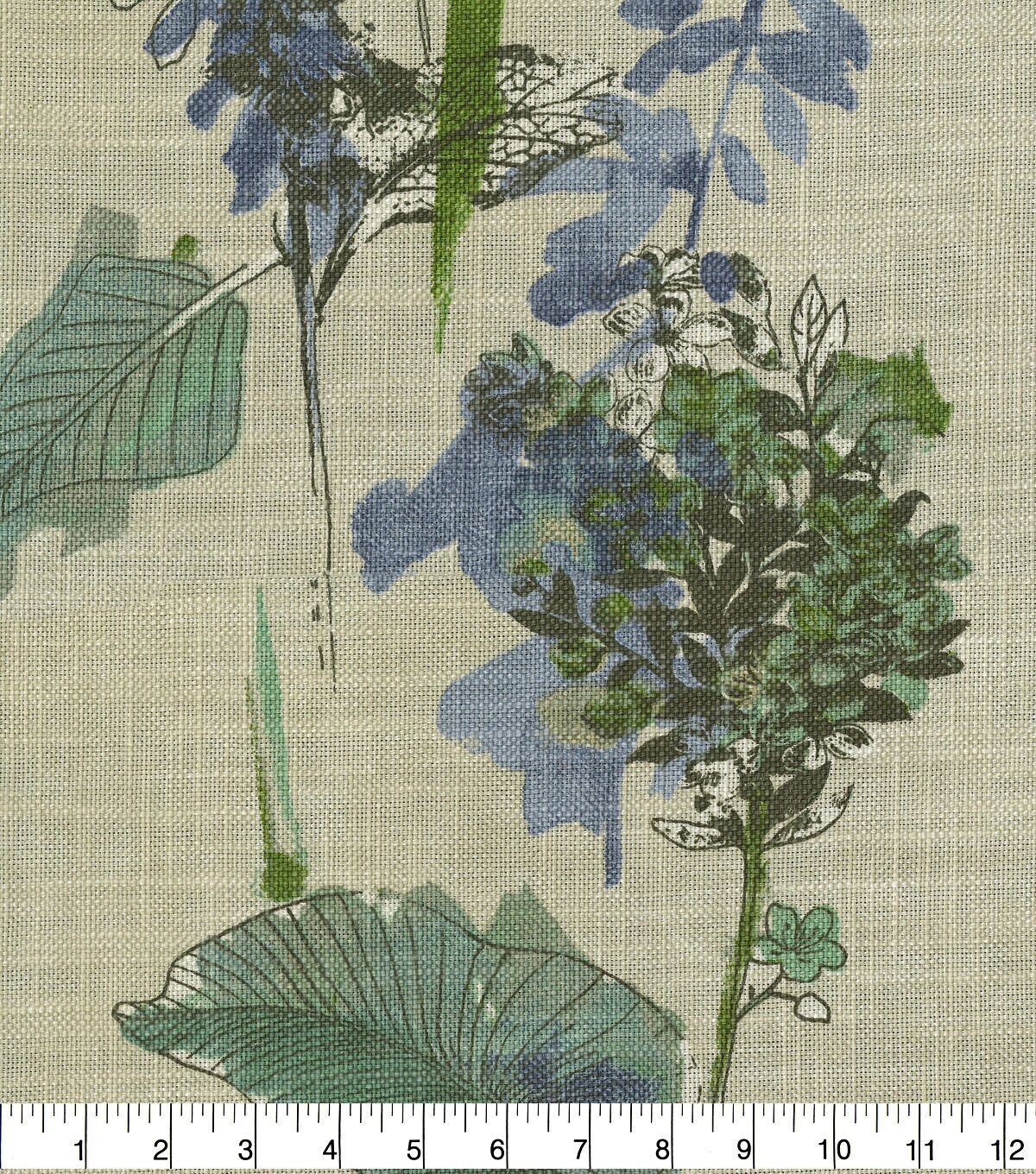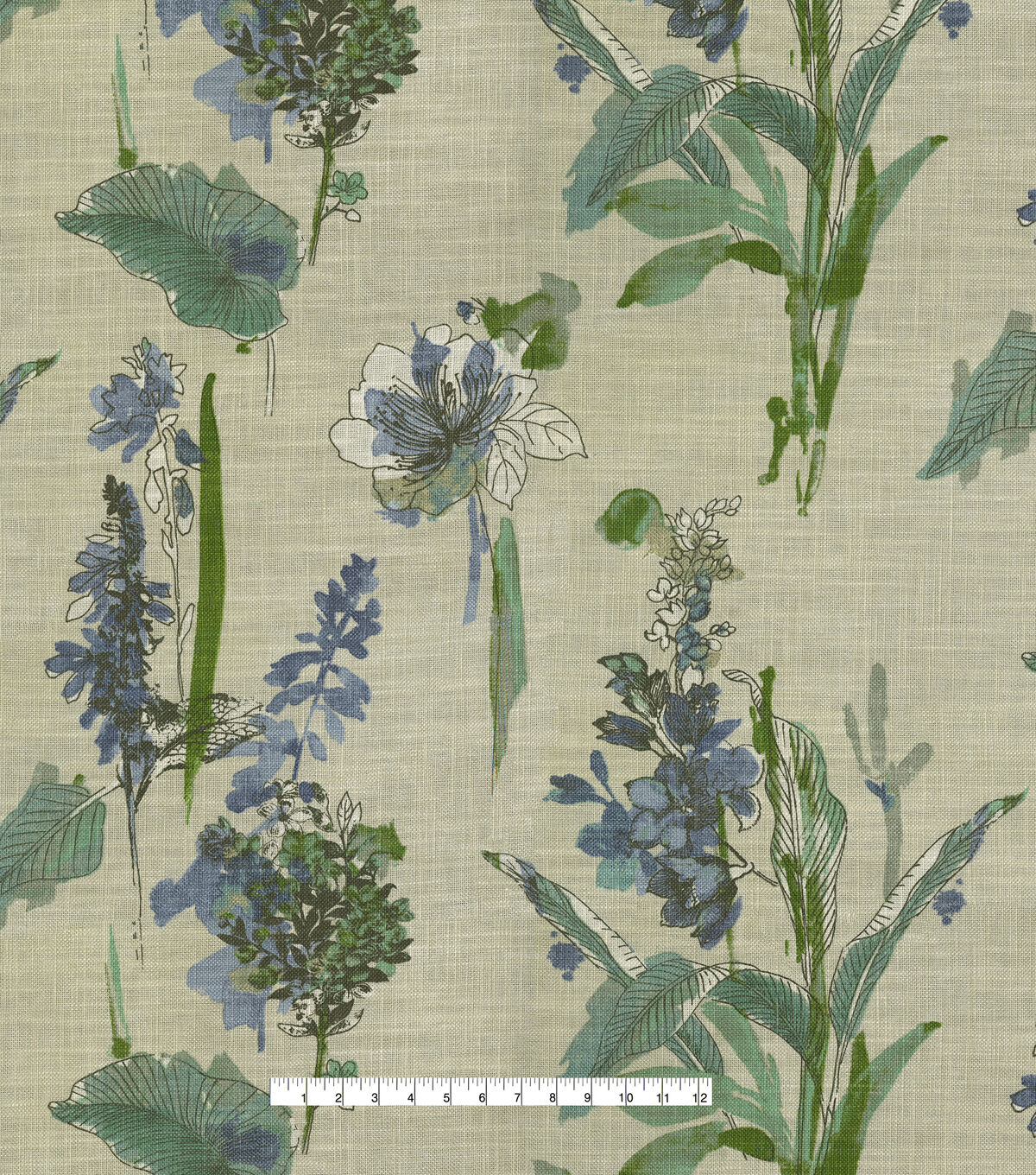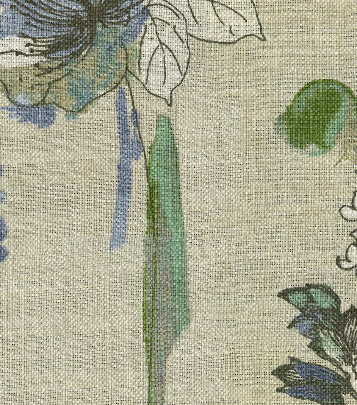 A page taken from the artist's notebook, Free-Hand Floral is a rustic, whimsical watercolor loosely drawn and painted on a chunky cotton/linen blend cloth. Abrasion 27,000 double rubs is suitable for upholstery, drapery, toss pillows, tabletop, tote bags, bedding and more.