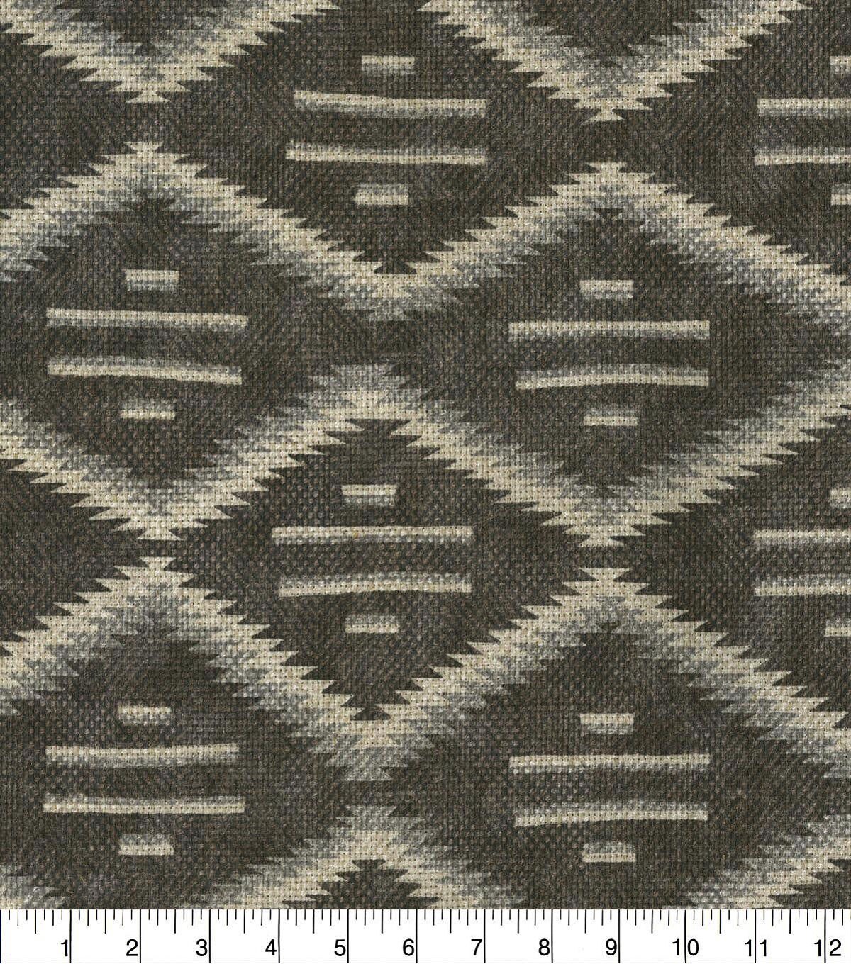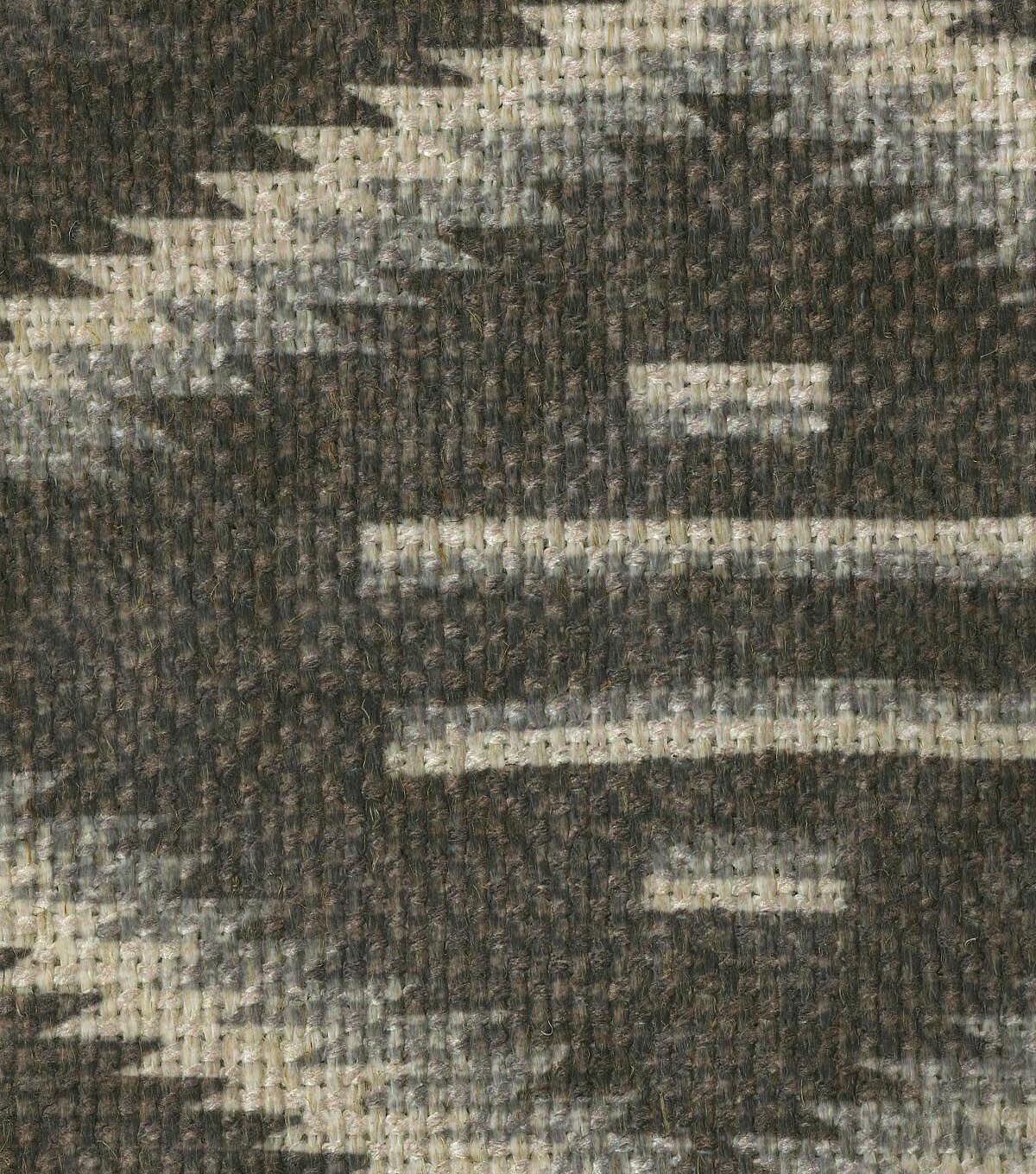 Inspired by a Southwest native textural blanket Modern Heirloom is printed on a poly/linen box weave blend with a soft hand. Wyzenbeek 27,000 double rubs create drapery, toss pillows, tote bags, tabletop, upholstery and other décor projects.