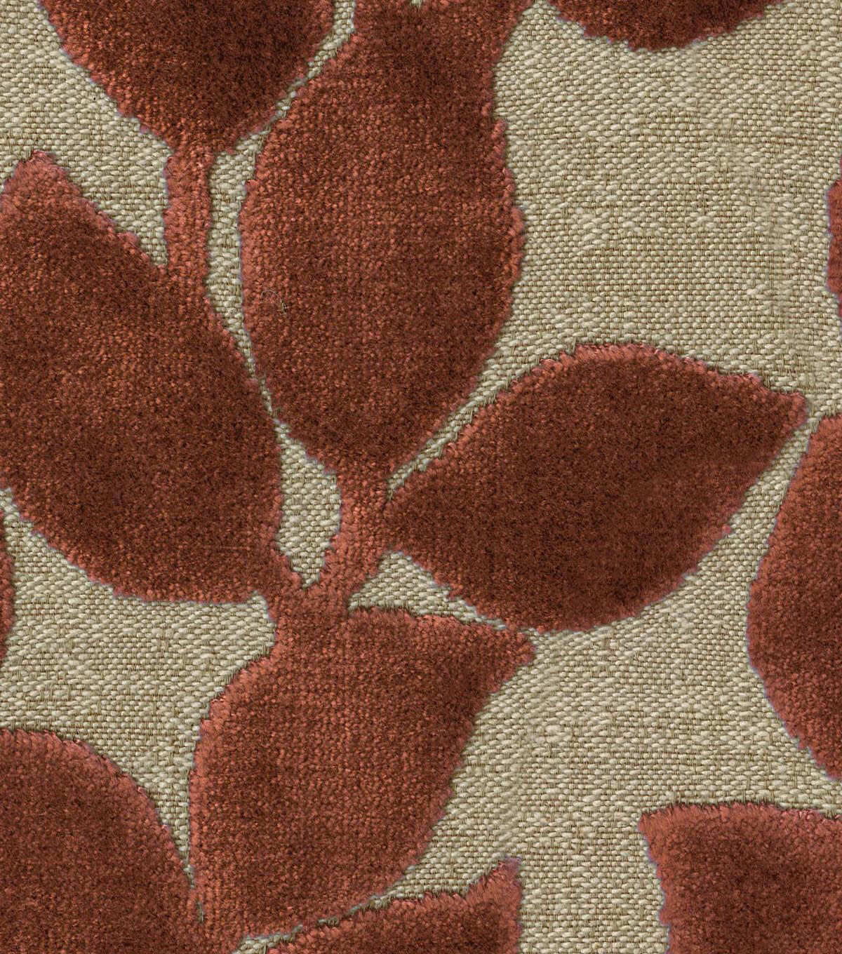 P/K Lifestyles Lovely Leaf appears to have a craved effect against its ground. Climbing velvet leaves silhouetted against a solid ground make this substantial woven suitable for any upholstery or home décor application.