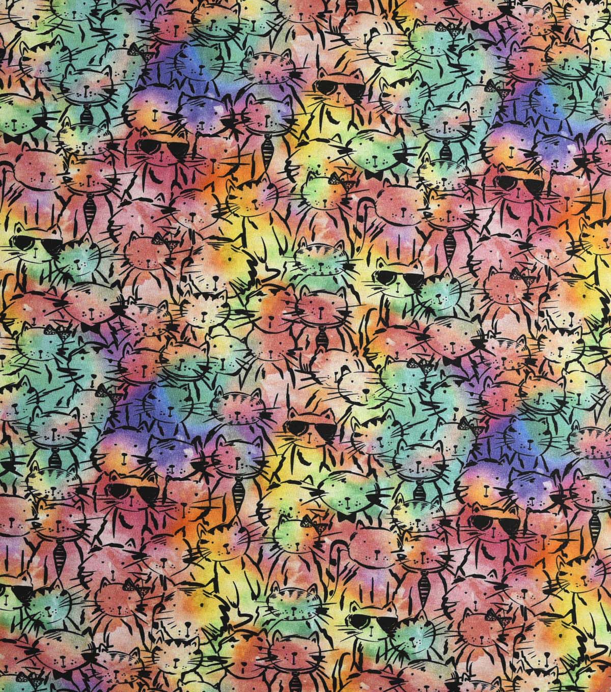Packed Cool Cats Tiedye Novelty Cotton Fabric