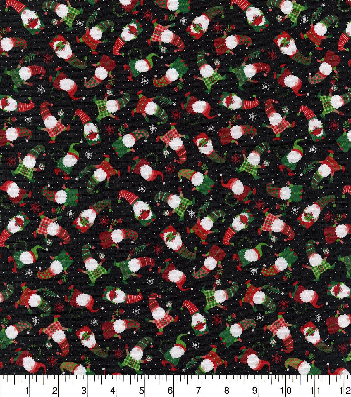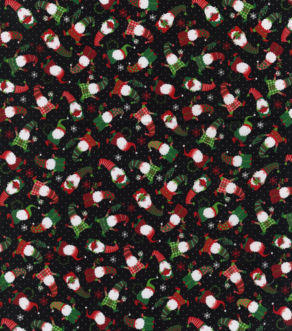 • Packed Gnomes on Black Christmas Cotton Fabric