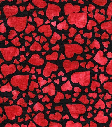 • Packed Red Hearts on Black Batik Valentine's Day Cotton Fabric