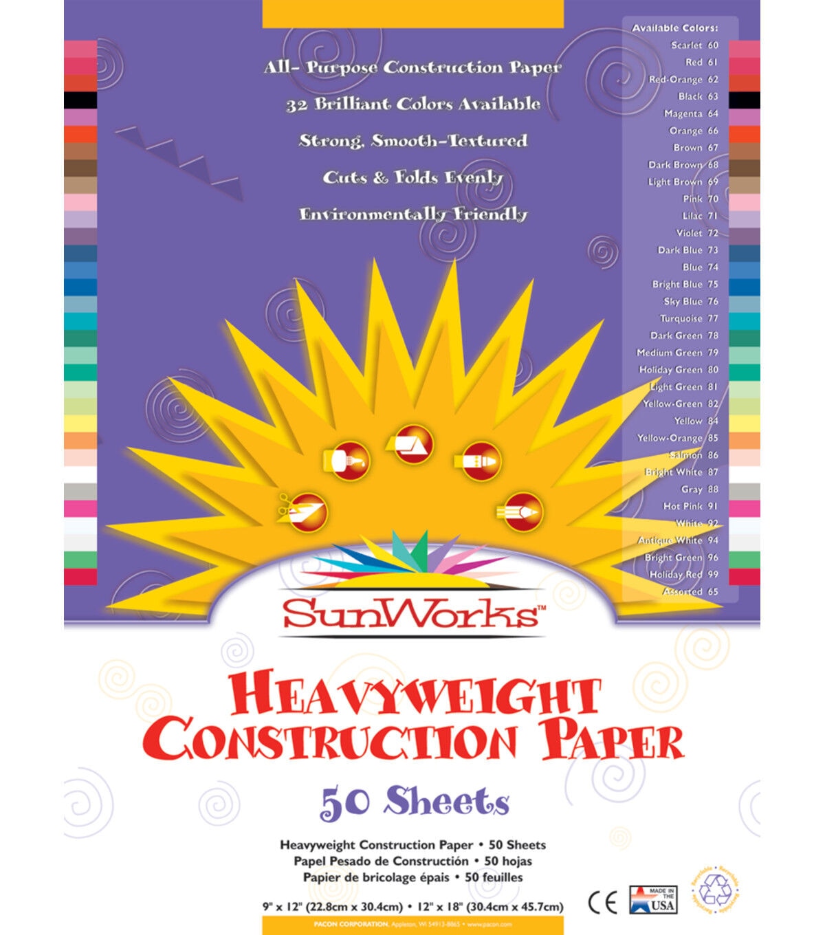 • Pacon 50 Sheet 12" x 18" Multicolor SunWorks Construction Papers