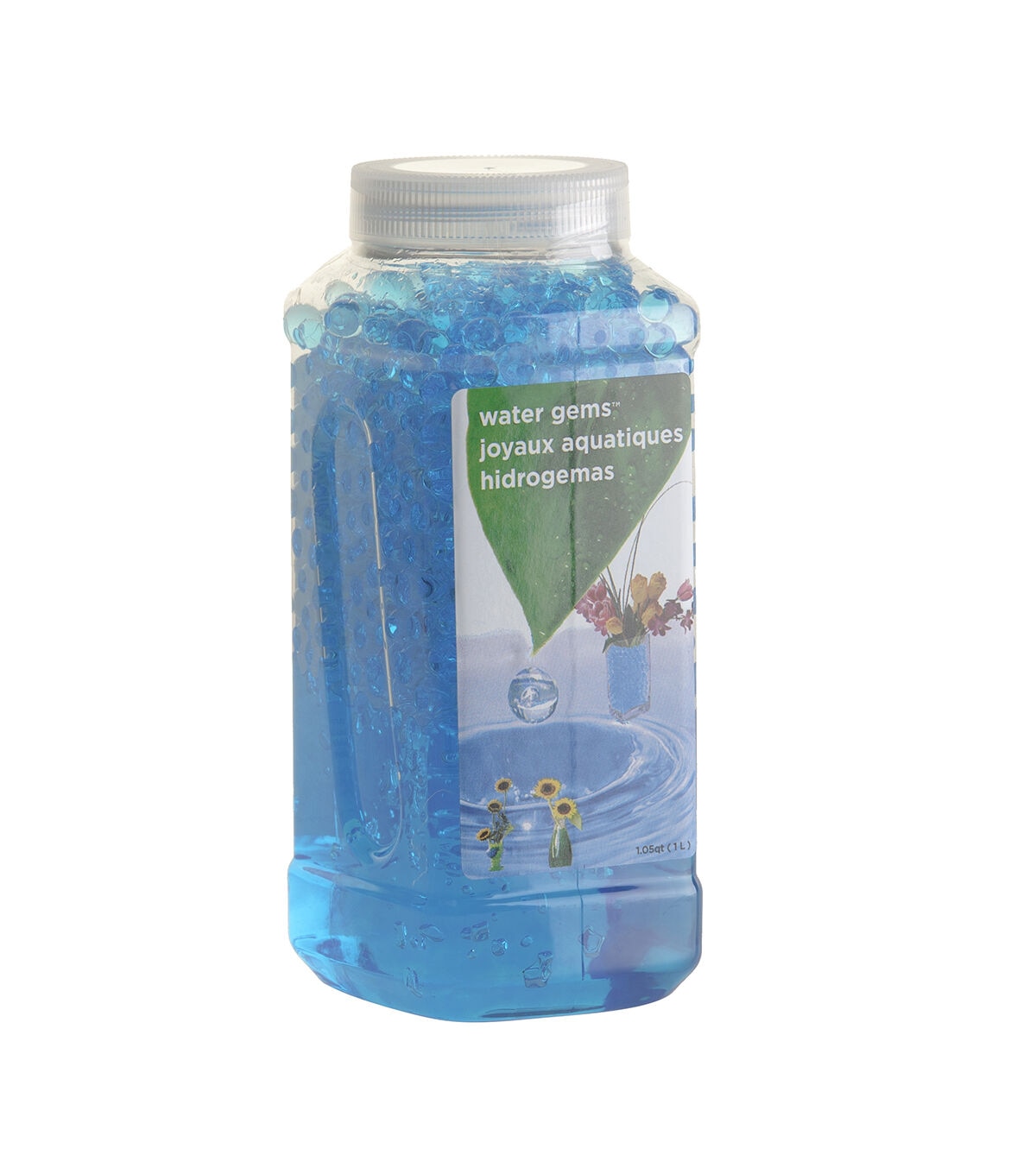 The Panacea Products Water Gems - Blue are a unique vase filler. This pack contains biodegradable and non-toxic super absorbent polymer beads that expands when water is added. Mist with water about every other day to maintain hydration. They are great for fresh-cut flowers, candle accents, as soil substitutes for growing plants or alone as an intriguing focal point. These gems are already hydrated.