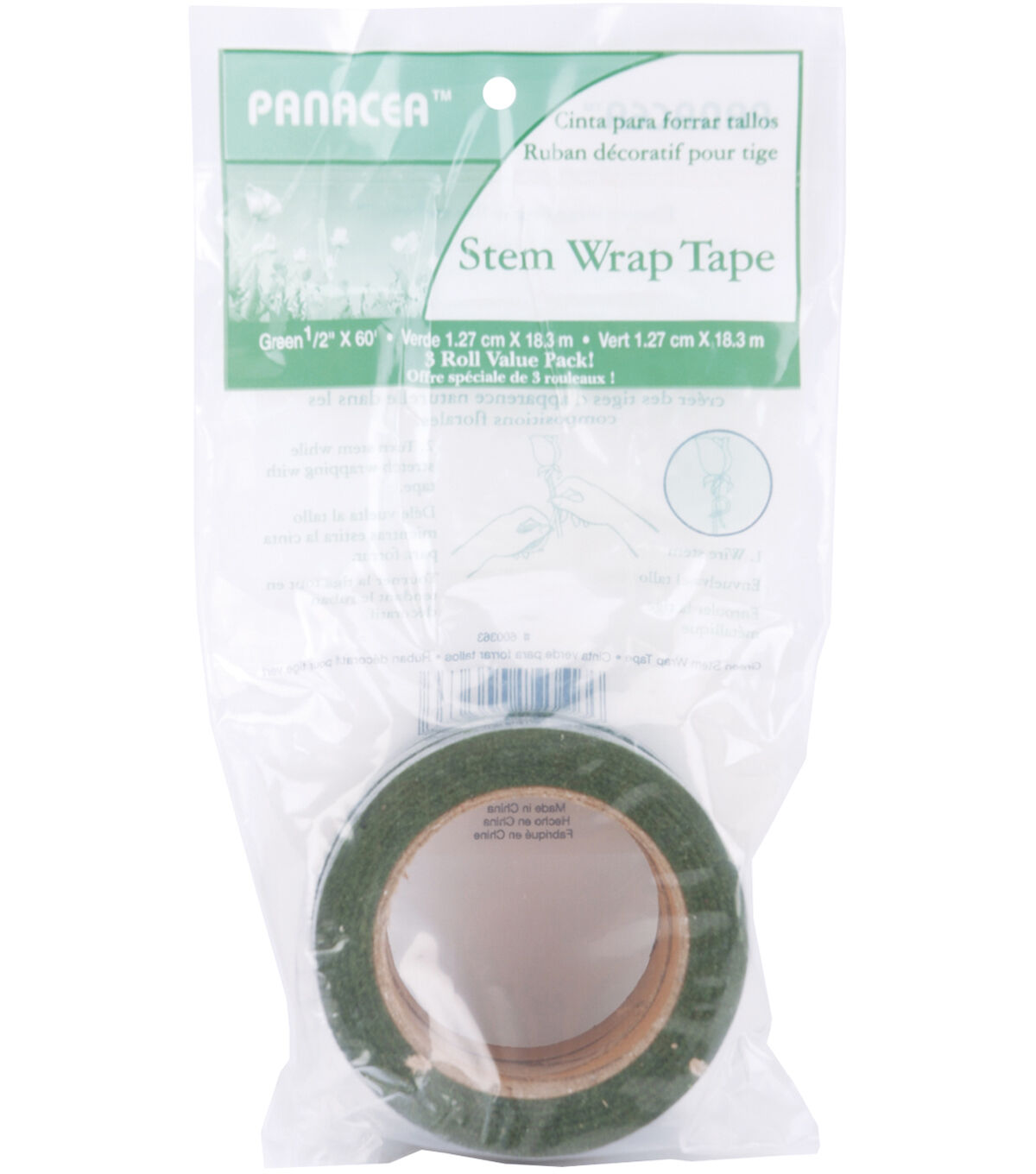The Panacea Products Floral Stem Wrap Tapes - Green will come in handy when you need to display your floral arrangements in style. This pack contains three rolls of green-hued floral tapes that measure 60 feet each and comes with an adhesive that bonds well to surfaces. You can easily tear them. Use them for bouquets, boutonnieres or vase arrangements.