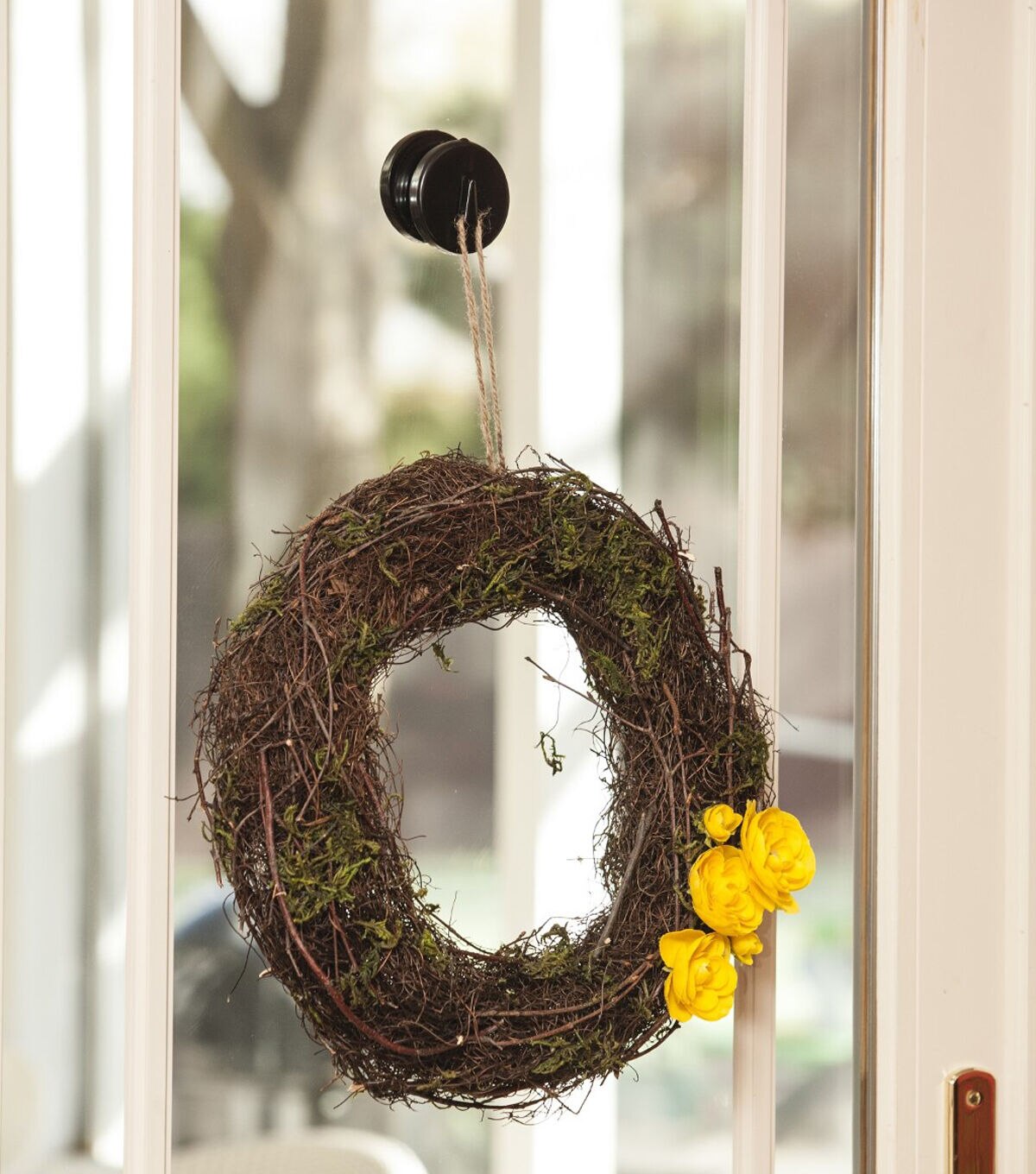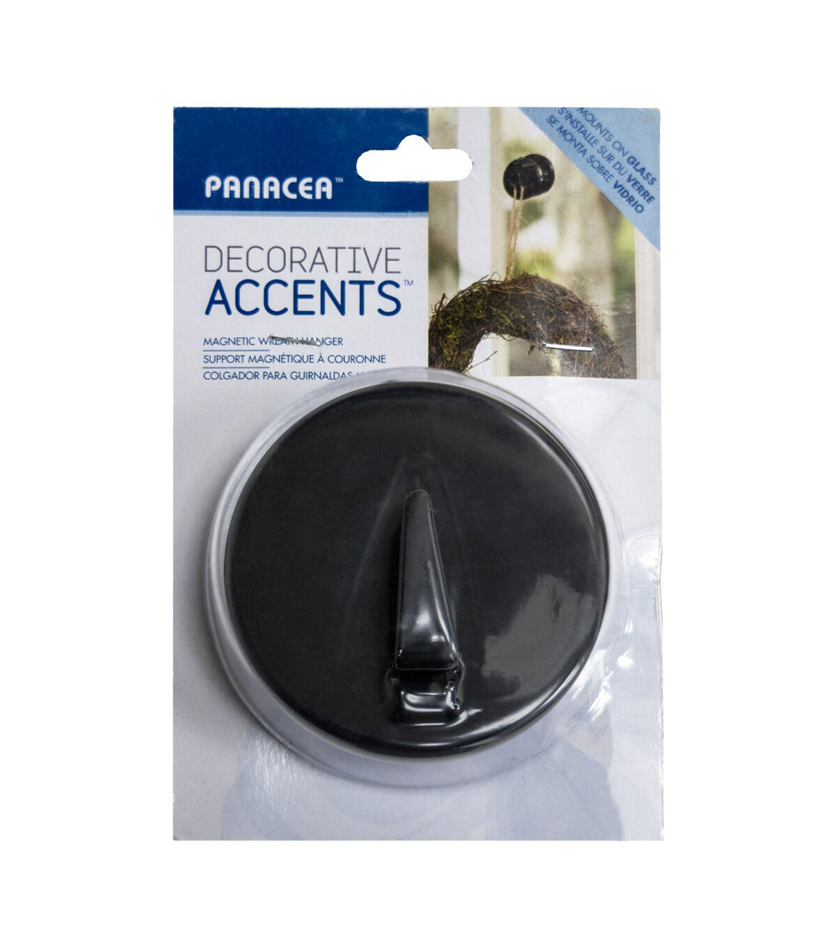 The Panacea Products Magnetic Wreath Hangers - Black will be an interesting addition to your home decor. This pack includes two magnetic wreath hangers that allow you to hang wreaths on a door without showing the hanger. Their sleek design is sure to make your wreath the focal point of your front door.