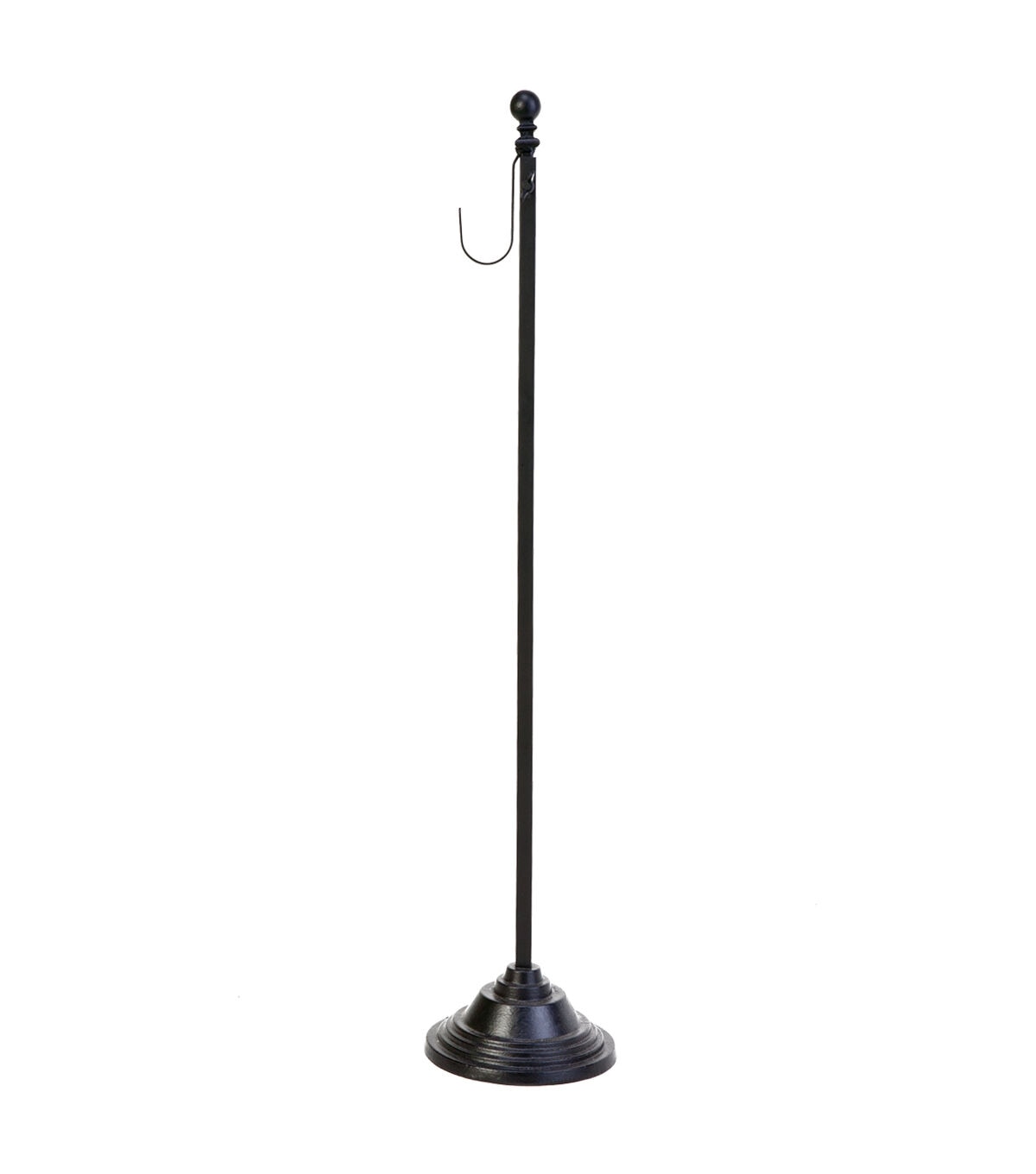 Provide a finishing touch to your home decor this season with the Panacea Products Wreath Stand with Finial Top - Black. It is made of powder-coated steel and flaunts a black shade. This freestanding wreath stand is adjustable and measures 29.5 inches in height that allows you to hang a wreath any place you like. The finial top completes its look.