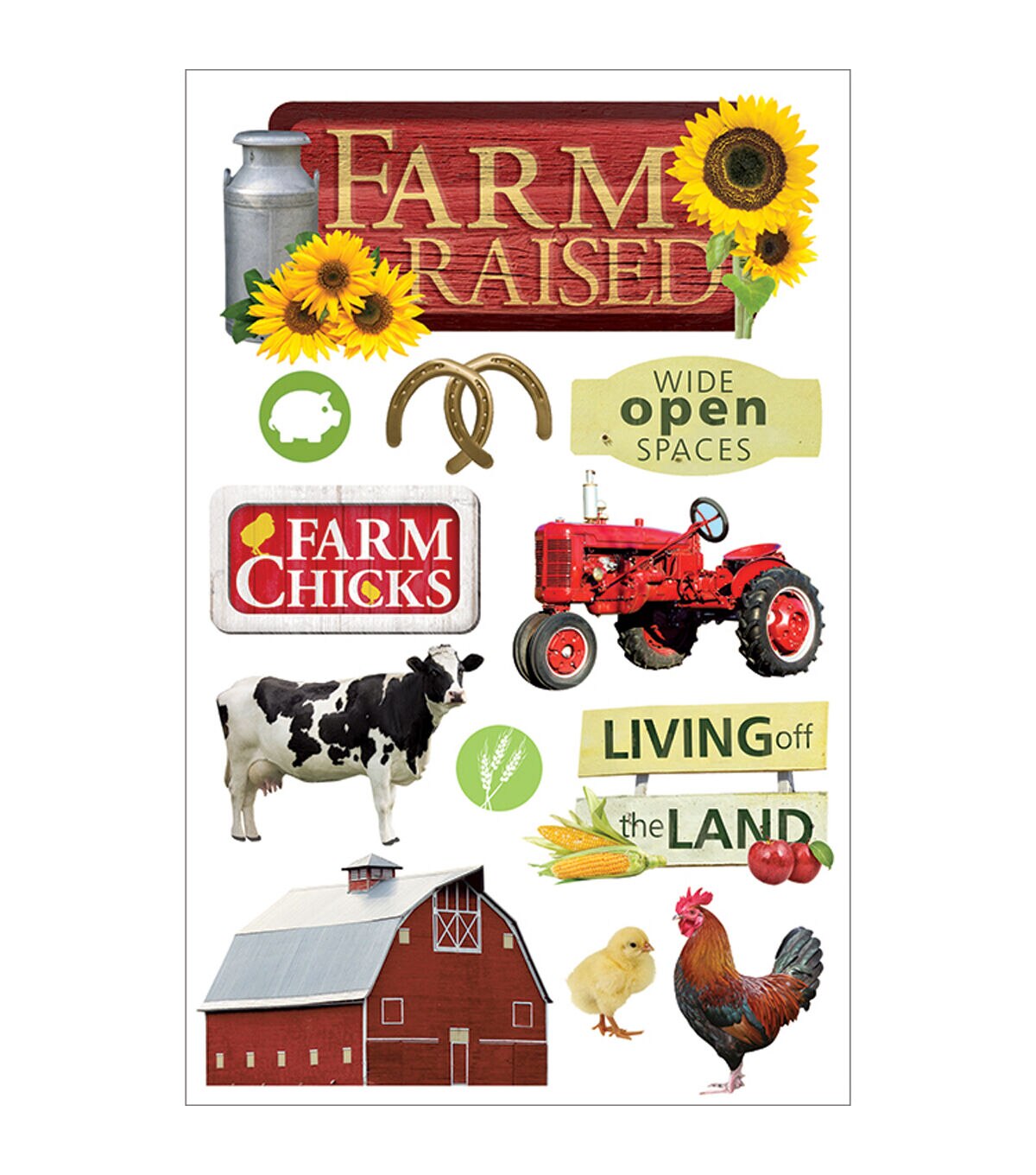 The Paper House 3D Stickers - Farm Raised are perfect to accentuate scrapbooks, diaries, gifts, greeting cards, invites, notes and other craft projects. You can use them to add dimension to your creations and make them pop. Designed as colorful shapes with a fun theme, these 3D stickers are visually appealing and a must-have for crafters. This sheet contains an assortment of various themed designs.