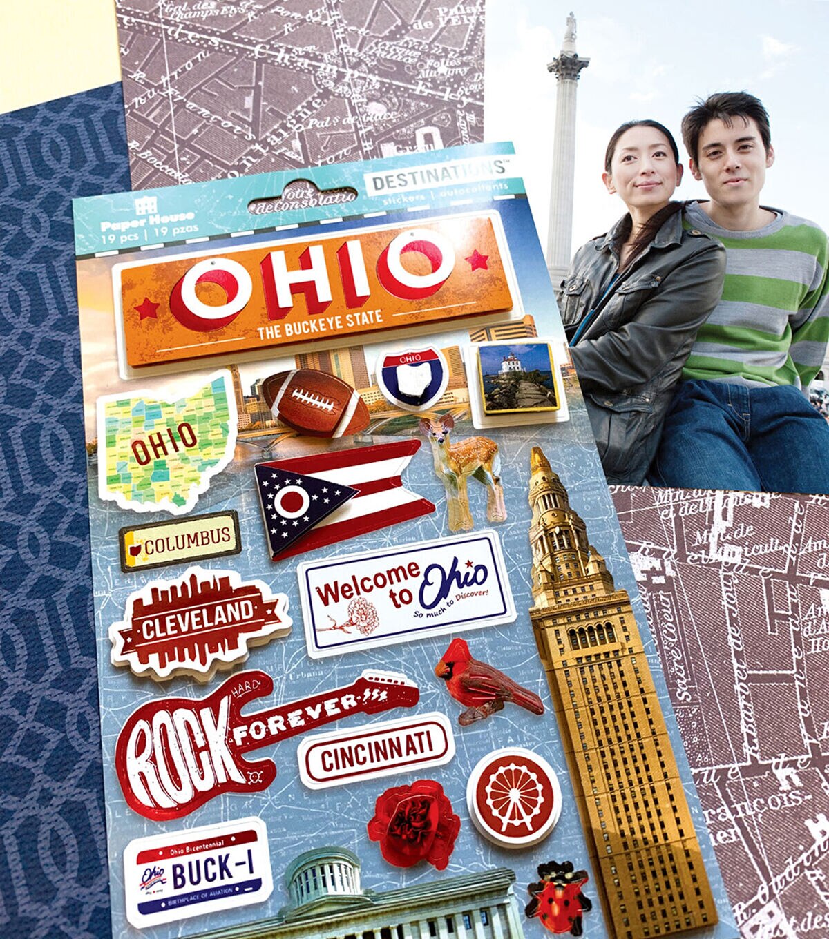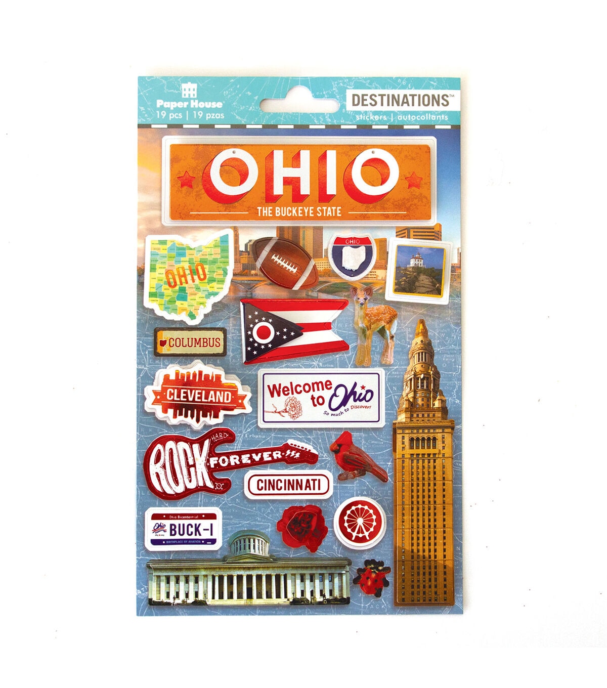 This Ohio Destinations Sticker is a great snapshot of all things Buckeye State! Whether you call Ohio home, are just passing through, or are learning about the state itself, this sticker provides fun layered and foiled embellishment!