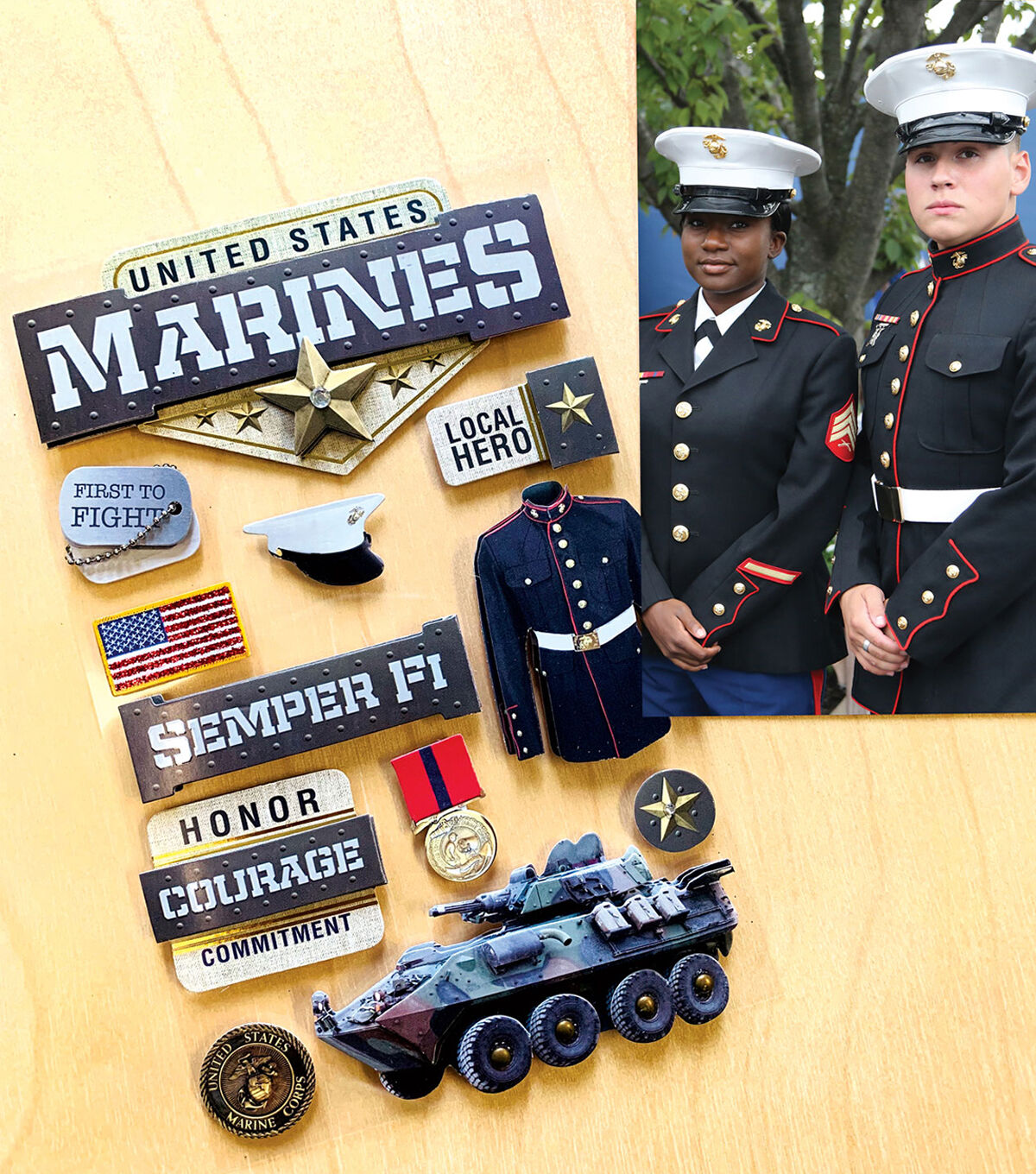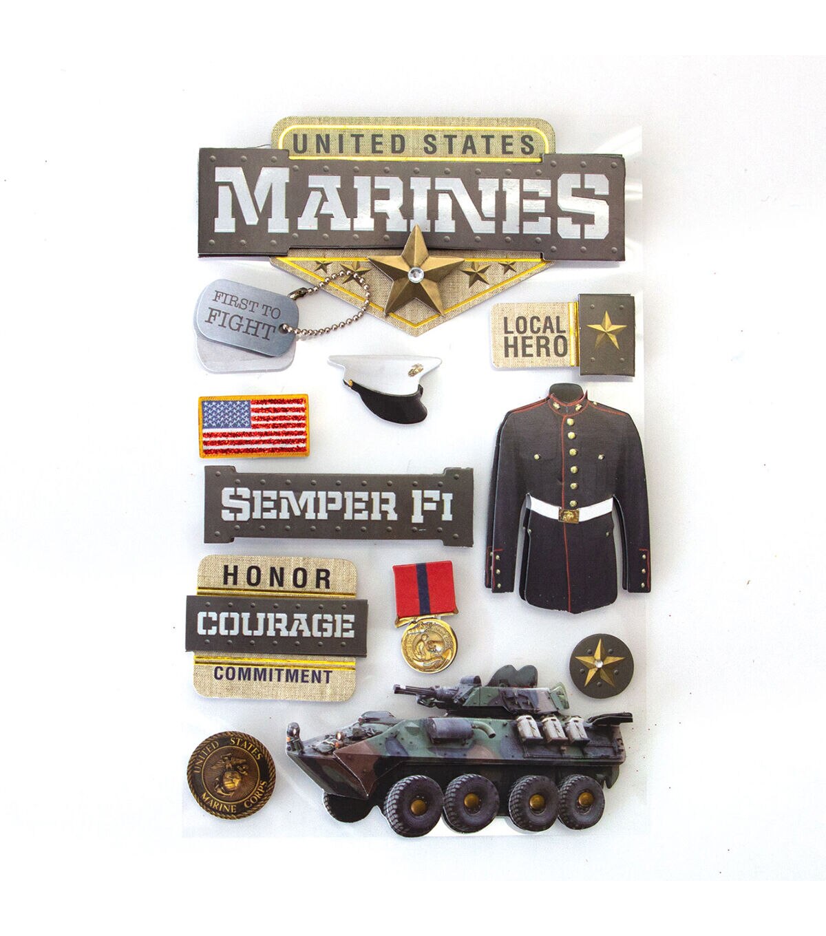 Lend a charismatic look to your crafting projects with the Paper House United States Marines 3D Stickers.Sporting attractive photo-real images, these stickers will add a dash of grace to your scrapbooks, dairies, journals and more. The sheet features a variety of 3D stickers accentuated with glitter, epoxy, foil and lots more. You can further enhance its look by teaming it with coordinating washi tapes, stamps and more.
