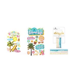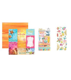 Create wonderful paper craft projects with the Paper House Sun Drenched Papers, stickers and embellishments. These papers feature gorgeous summer colors: blues, sunset organge, brilliant sunshine, cool waters.... Acid and lignin free, these beautiful 12 x 12 inches sheets make an ideal choice for card making, pocket scrapbooking, decor projects and more. Each pack contains 12 double sided designs. The set also includes a cardstock sticker pack, flat stickers and dimensional stickers: literally hundreds of ways to accent, embellish and create!