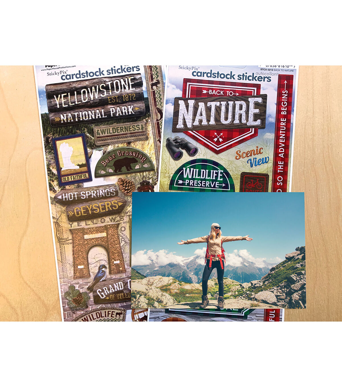 - a variety of die cut colorful cardstock stickers in 2 coordinating themes