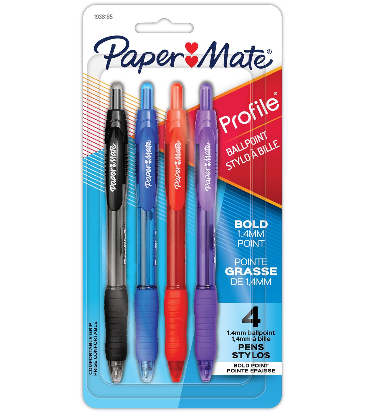Add the Paper Mate Assorted Color Pens to the gift basket of your little artist. This pack includes four retractable ballpoint pens designed with contoured grips for comfortable writing. The ink dries quickly and does not smudge on paper. They can use these pens to add color to handwritten notes and scrapbook pages.