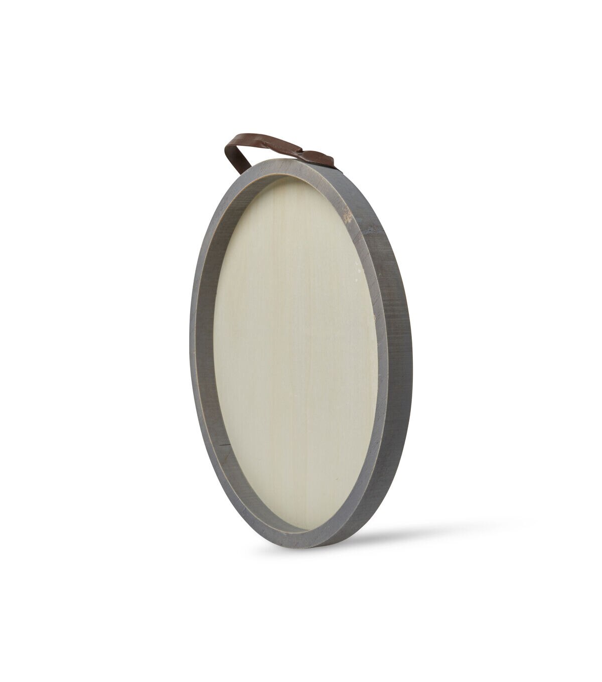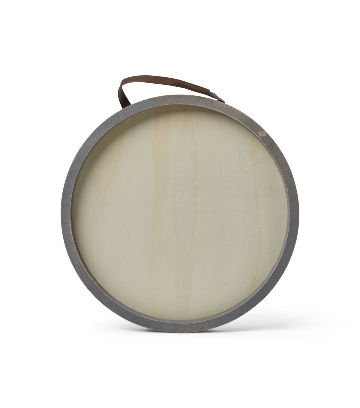 Make crafting fun for your kids by adding the Park Lane Round Framed Wall Decor with Leather Strap - Gray. This unfinished sign is designed with a frame sporting a gray shade and a white blank accent on which they can draw, color or decorate with papercrafting embellishments. The leather strap gives it a rustic touch. They can use the finished sign to decorate their room.