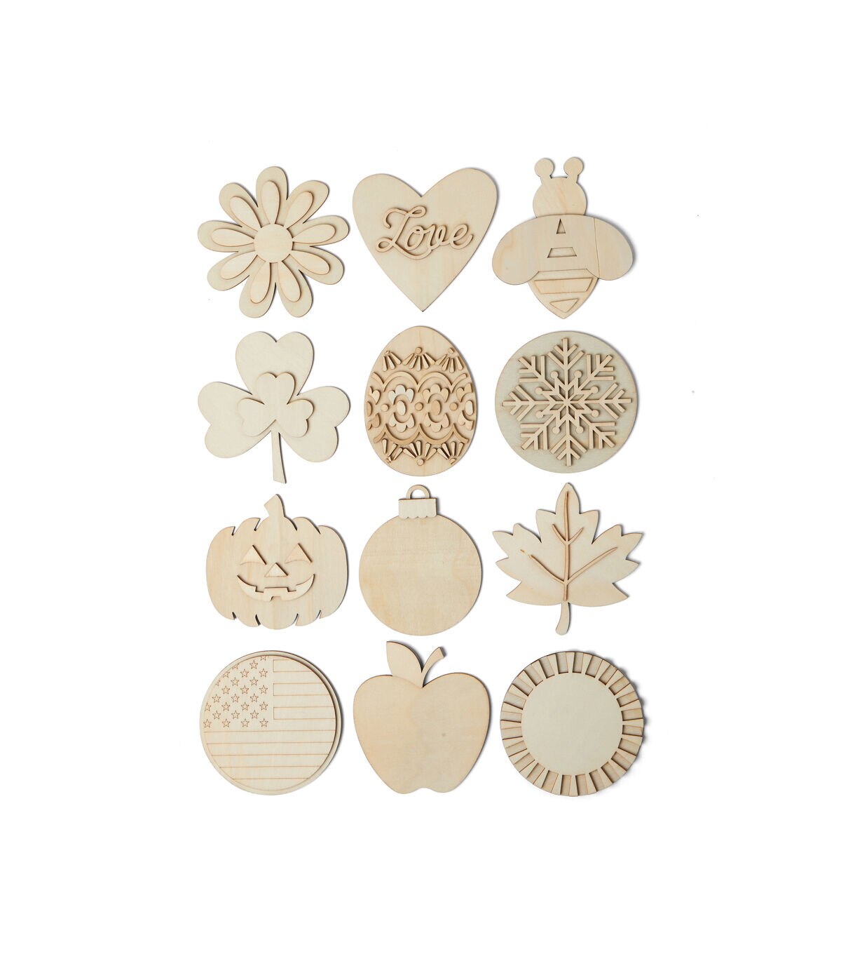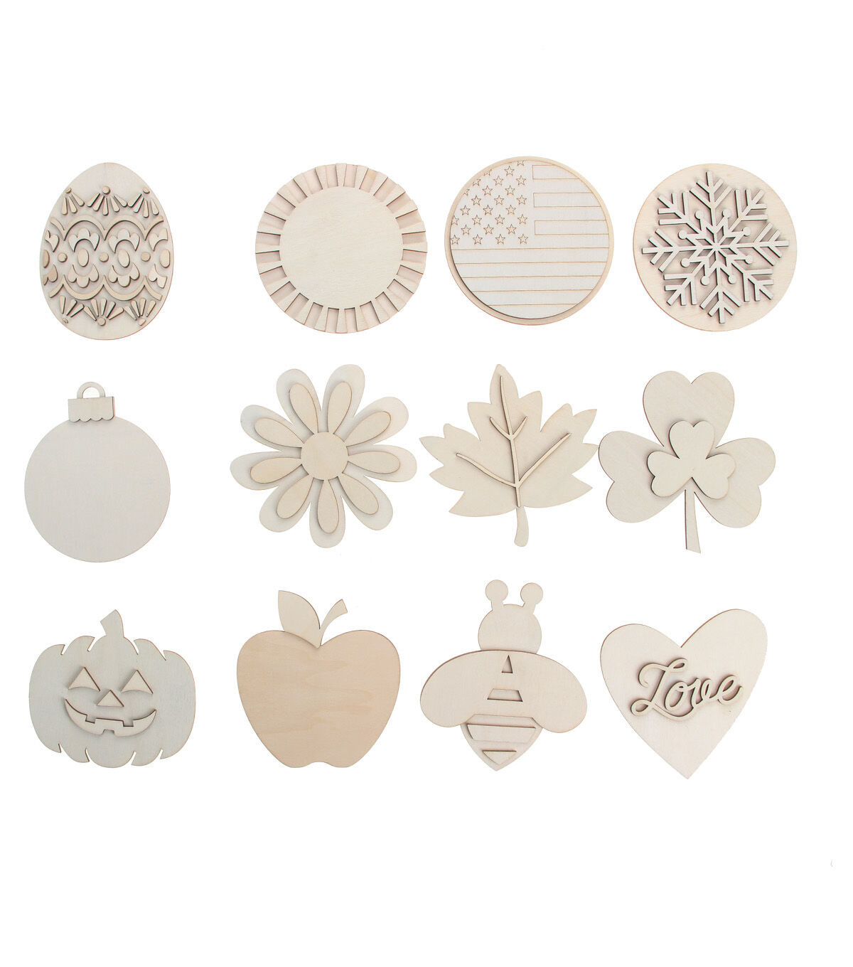 The Park Lane Unfinished Wood Interchangeable Wall Decor - Home will make an interesting addition to your craft supplies. This pack includes an unfinished wooden wall sign that is designed with cutouts of the letters that spell ‘Home’ and 12 ornaments shaped like various festive or seasonal icons. Choose an ornament that will complement your existing decor and add it in the place of ‘O.’ It will make a fun crafting project for your kids and you. Display the finished version on the porch or entryway wall.