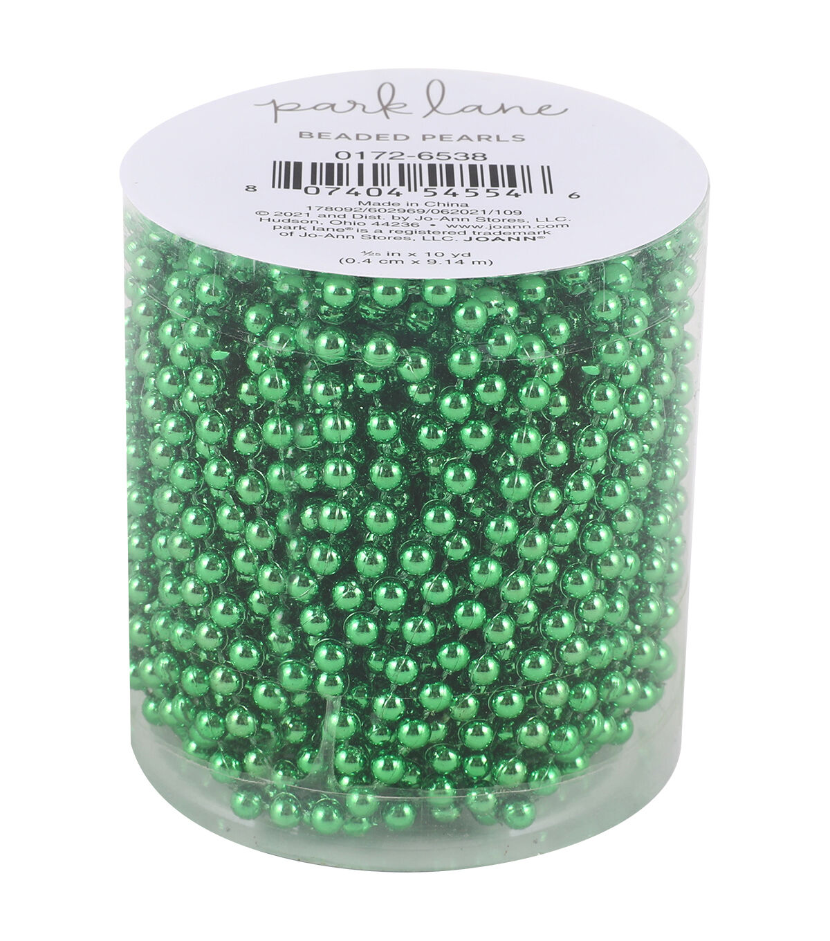 The Park Lane Beaded Pearls in Canister - Metallic Green will make a lovely addition to your craft and decor projects. This canister contains beaded pearls that sport a metallic green finish. You can use these pearls to decorate old ceramic vases, plain photo frames, accentuate DIY wreaths or trim dresses, hats, purses and more.