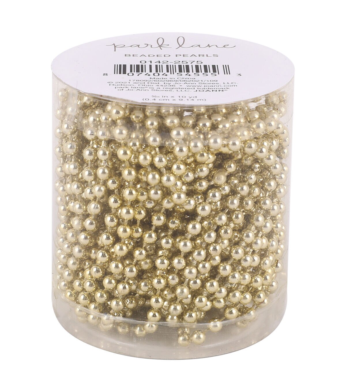 The Park Lane Beaded Pearls in Canister - Metallic Gold will make a lovely addition to your craft and decor projects. This canister contains beaded pearls that sport a lovely gold-toned finish. You can use these pearls to decorate old ceramic vases, plain photo frames, accentuate DIY wreaths or trim dresses, hats, purses and more.