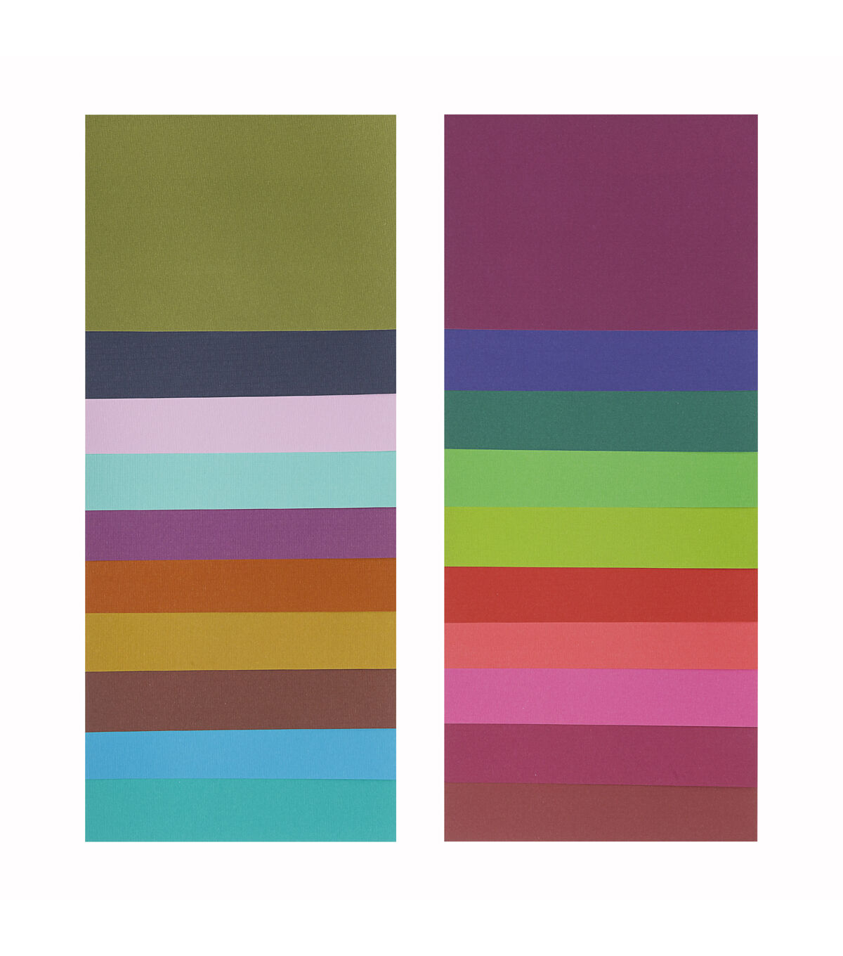 A great way to purchase a variety of solids for all your projects, this assortment with jewel-toned cardstock is perfect for you! Just pull them out and use them for cards, photo mats, die cut shapes, borders and more!