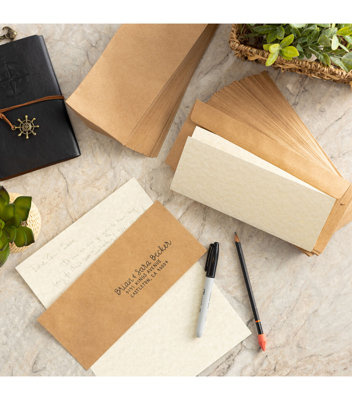 Decorate it, label it, then deliver it! Our A9 White cardstock envelopes feature Kraft rectangular envelopes, a rectangular flap to seal them shut, and a Kraft interior. These blank envelopes are perfect for decorating with stamps or stickers, and giving mail or gifts a special touch. Includes 100 envelopes