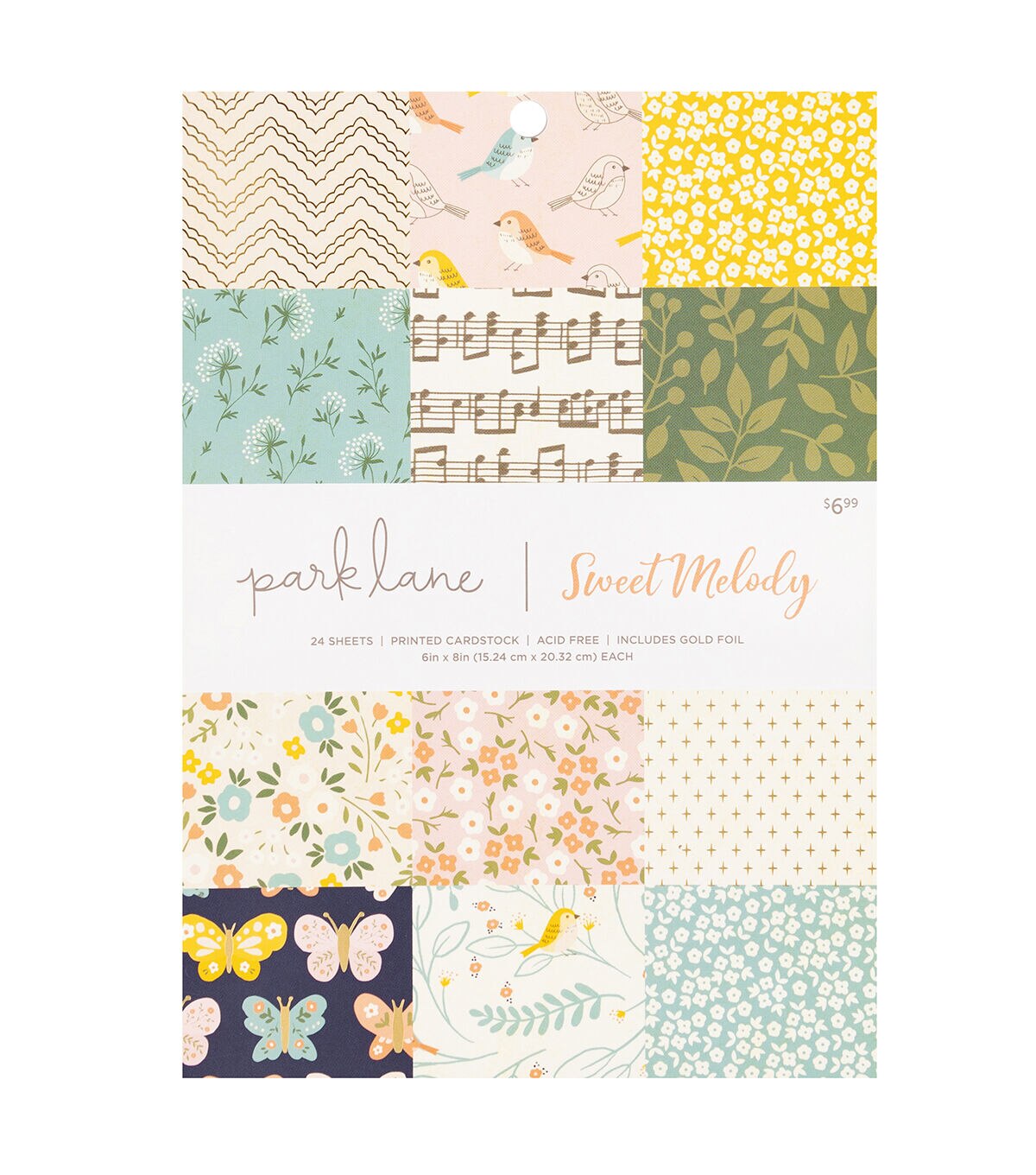 Park Lane paper pads have something for everyone and every style! Bold, beautiful colors complement a variety of patterns and finishes to fit nearly any project you're working on. 6x8 packs are perfect for scrapbook pages, albums, handmade cards and more. Pick and choose from a variety of colorful packs for a style that's uniquely you! This pack includes 24 sheets of 6x8-inch paper, some with foil accents. 210 gsm.