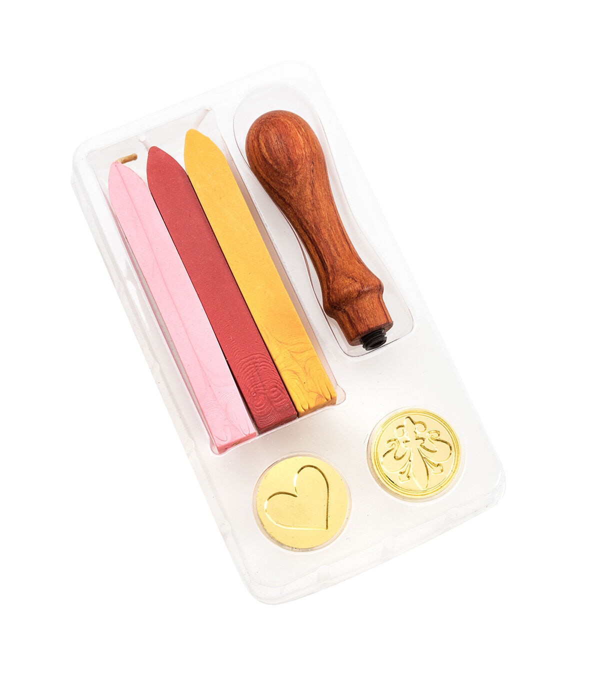• INCLUDES: 2 gold wax seal stamps, 1 wooden stamp handle, and 3 wax sticks in various colors