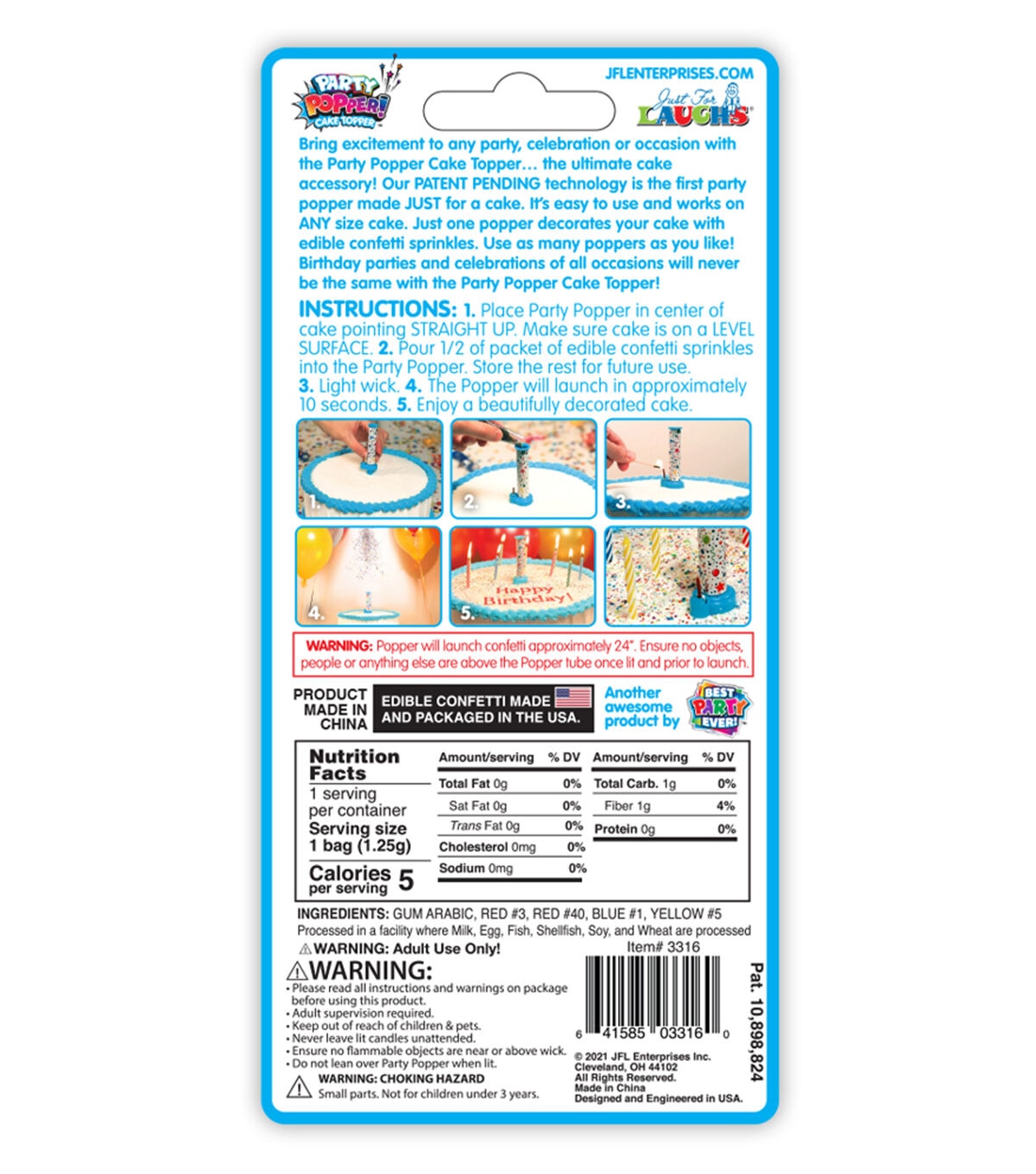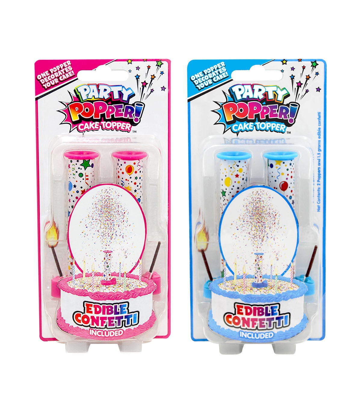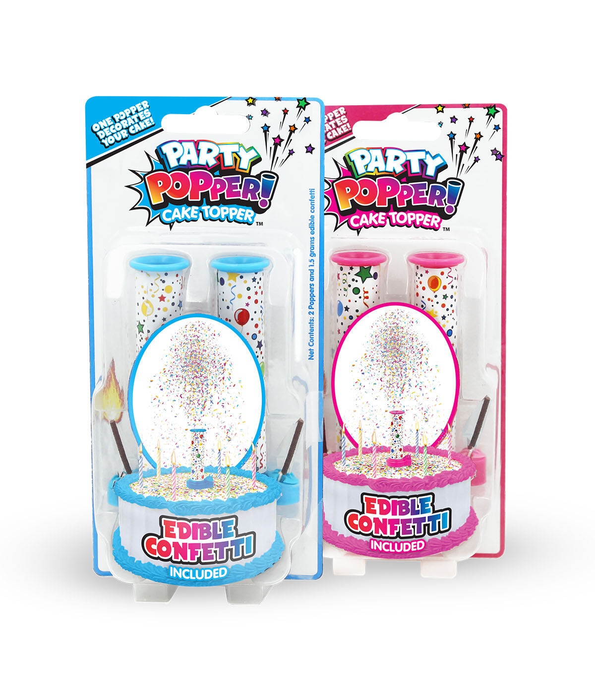 - Brings excitement to any birthday party. Simply fill the Party Popper with edible confetti sprinkles place on your cake and watch in amazement as the Party Popper Cake Topper shoots edible confetti sprinkles into the air landing on and decorating your cake.