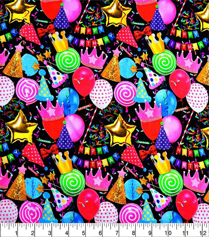 With a width of 44 inches and made of 100% cotton, this fabric is easy to care for. Simply machine wash gentle cold, tumble dry low, and cool iron as needed. Nonchlorine bleach can also be used if necessary. Imported for your convenience, this fabric is perfect for all your party-themed sewing needs.