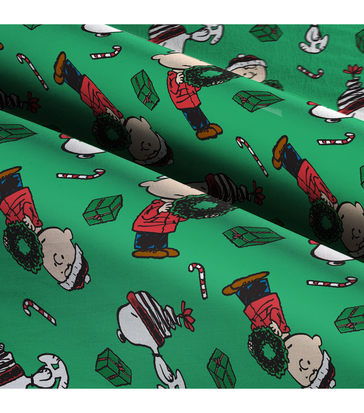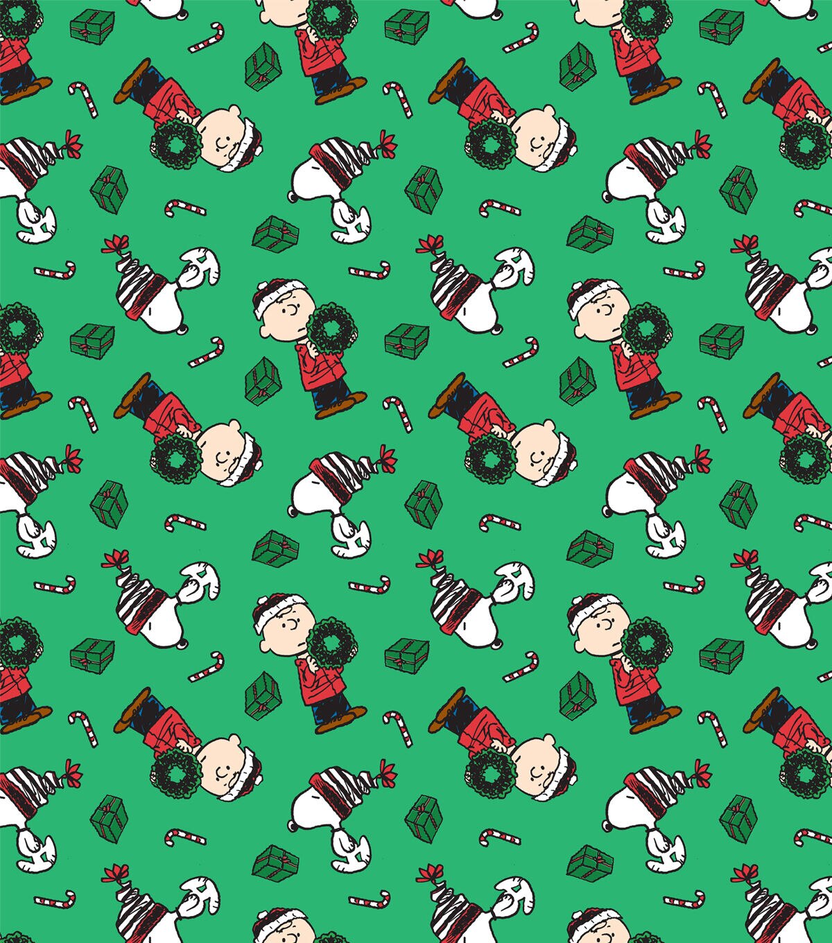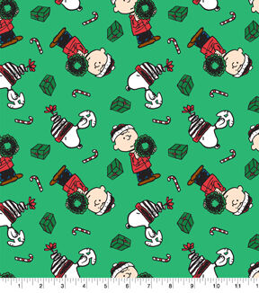 • Peanuts & Presents on Green Christmas Cotton Fabric