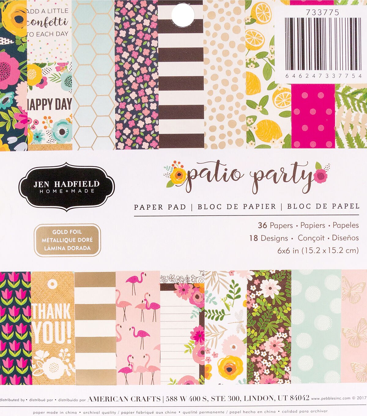 The perfect start to your scrapbooking projects and more! This pad contains thirty-six 6x6 inch single-sided sheets in 18 designs (two of each design). Design: Jen Hadfield Patio Party. Archival quality. WARNING: This product contains chemicals known to the state of California to cause cancer, birth defects or other reproductive harm. Do not mouth or chew. Imported.