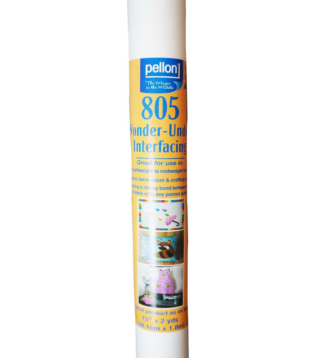 Fuse fabrics for apparel, home decor and craft projects in seconds using the Pellon Wonder Under Fusible Webs & Adhesives. This pack contains 2 yards of 15-inch-wide fusible web made from 100% polyester. It is machine stitchable and maintains a soft hand after fusing. You can use it to bond fabric to fabric or any porous surface like wood and cardboard.