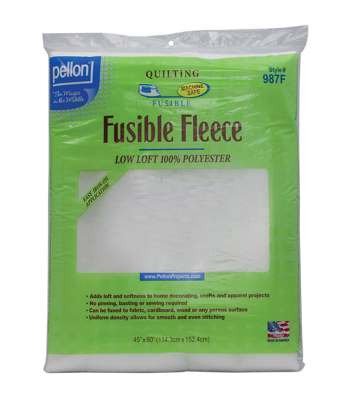 Create wonderful fleece projects without stitching, pinning or basting using the Pellon Low Loft Polyester Fusible Fleece - White. This pack contains 60 x 45-inch fusible fleece that can be fused to fabric, cardboard and wood. Use this fleece creatively to make stylish blankets, scarves and more. Embellish and embroider the fleece with threads or motifs to suit your crafting needs. It is safe for use with sewing machines.
