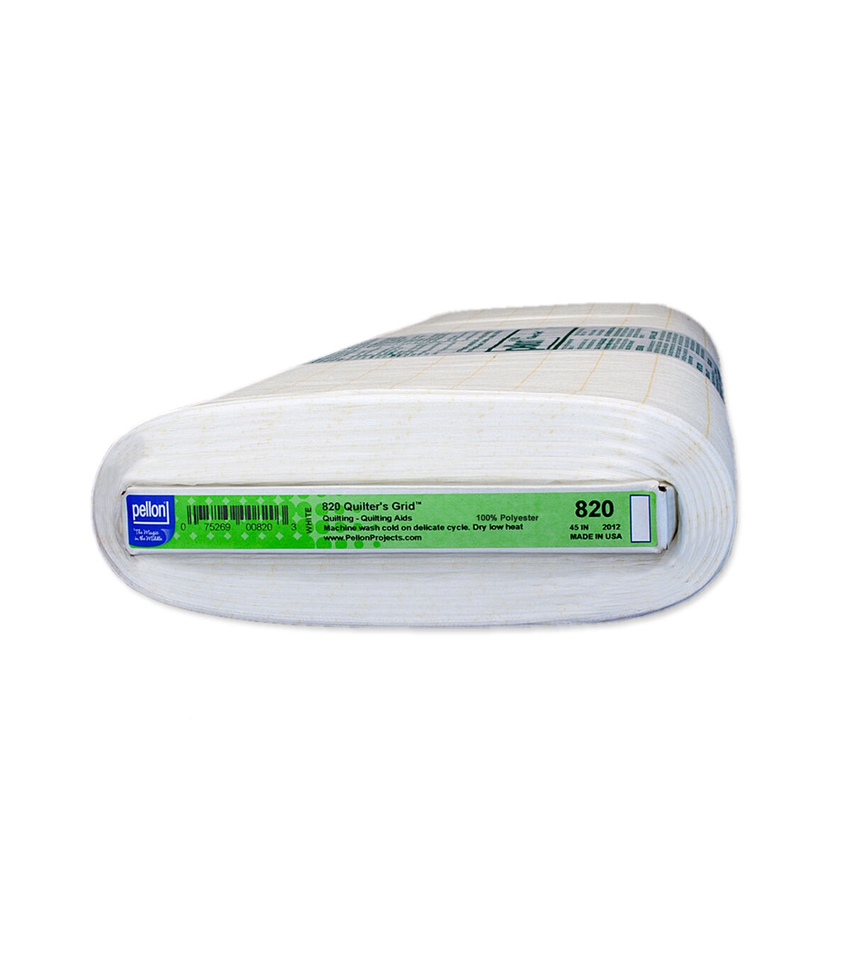 The Pellon 820 Fusible Quilter's Grid Board is a non-woven interfacing with a 1-inch printed grid for precision piecing of quilting projects. Use it to craft wall hangings and quilts that utilize cut fabric squares. It makes arranging fabrics easy without pinning. This needle-friendly fusible interfacing is made from polyester and viscose.