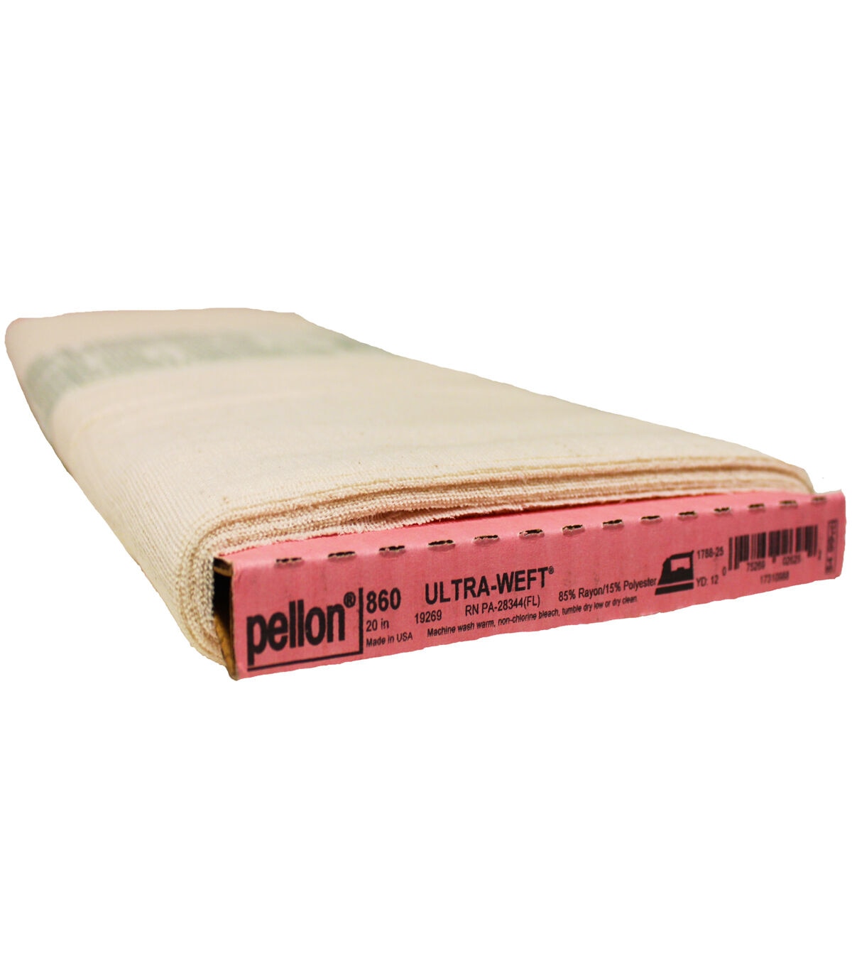Pellon® 860 Ultra Weft™ Interfacing 20" Wide. 860F Ultra-Weft™ is a fusible, weft insertion interfacing for traditional soft tailoring and designer drape in lightweight jackets and coats. It was developed for fabrics such as lightweight wool, cashmere, camel hair, and crepe.