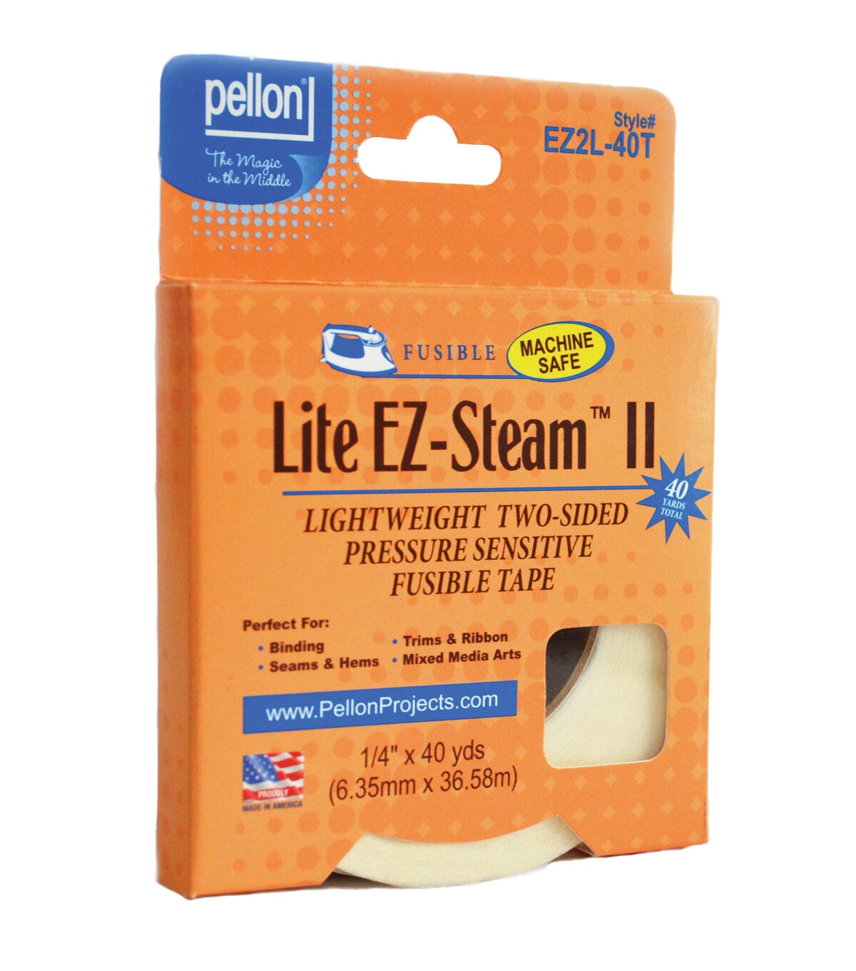 The Pellon Lite EZ-steam II Two-sided Fusible Adhesive Tape - White is what you need to bond many different fibers and materials without sewing. It comes with a pressure-sensitive adhesive on both sides to temporarily hold fabrics in place while you reposition them before fusing. This tape is perfect for binding and can be used on seams and hems, trims and ribbons and mixed media arts.