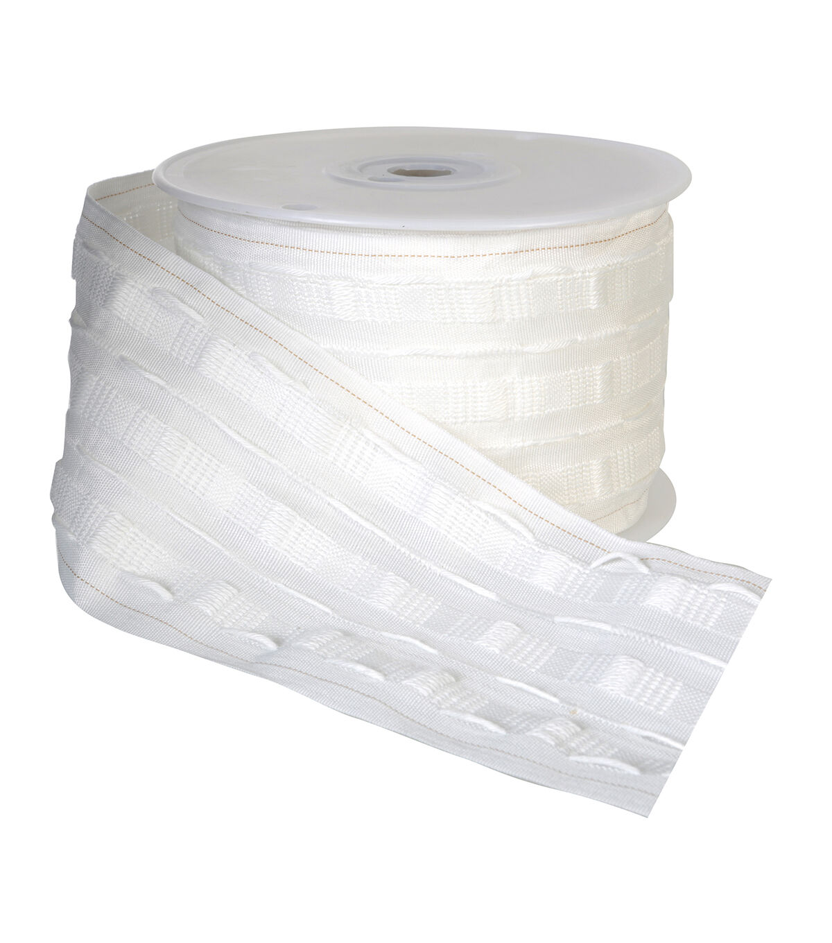 The Pencil Pleat - White will make a great addition to your drapery-making supplies. This pack includes tape designed with 1-foot-deep pleats at uniform intervals. It provides internal support at the top of the drapery and will let you make beautiful folded curtains.